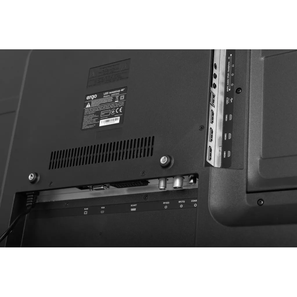 Телевизор ERGO 40DF5502 оснащен встроенным WI-FI-адаптером и интерфейсом RJ 45, а также полным набором входных и выходных интерфейсов, обеспечивающих исключительный комфорт и возможность подключения любых дополнительных мультимедийных устройств.