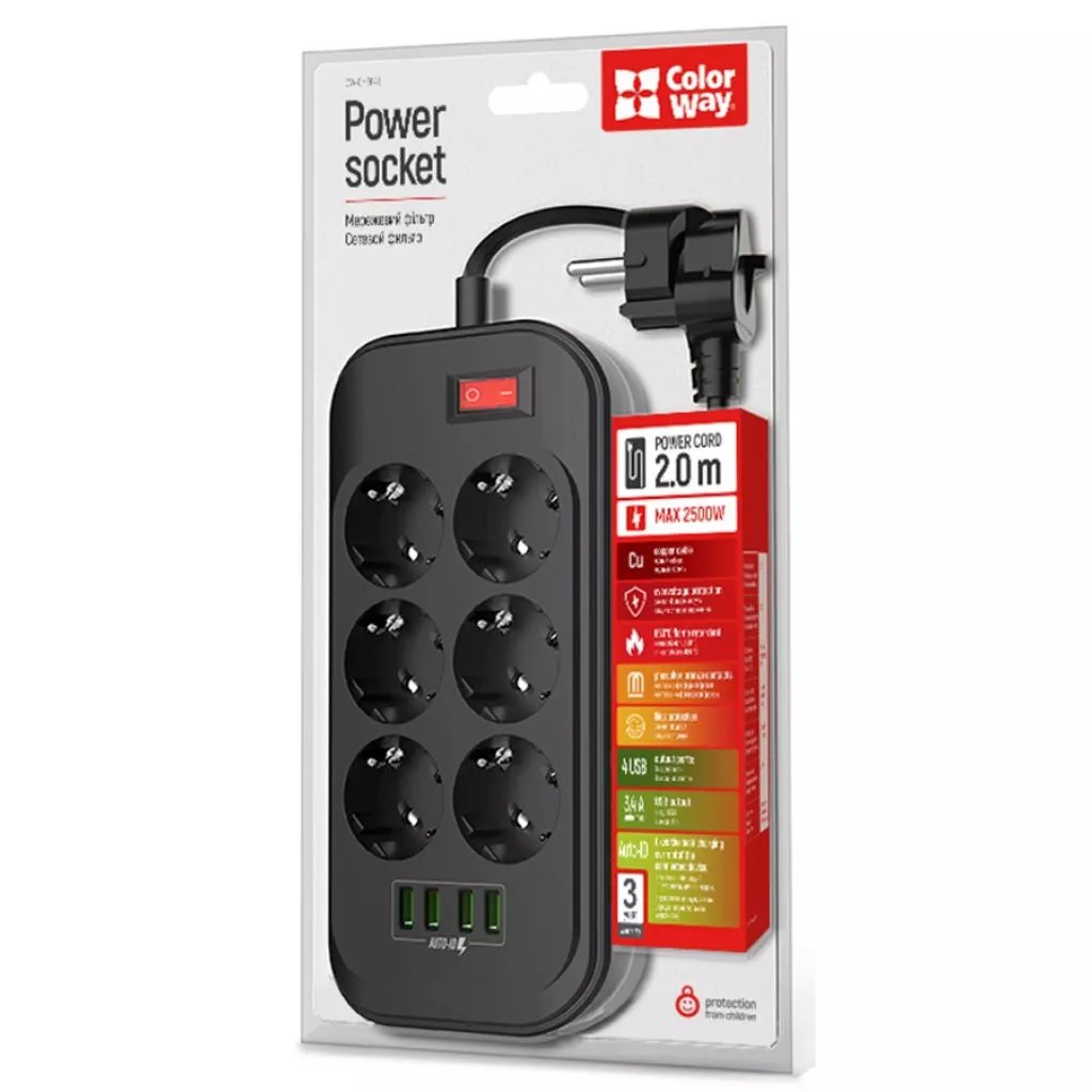 Приобрети Сетевой фильтр питания ColorWay CW-CHE64B, 6 розеток/4USB Black (CW-CHE64B) Вы можете в компании "А-ТЕХНО", оформив заказ на этом сайте через корзину или позвонив по указанным телефонам.