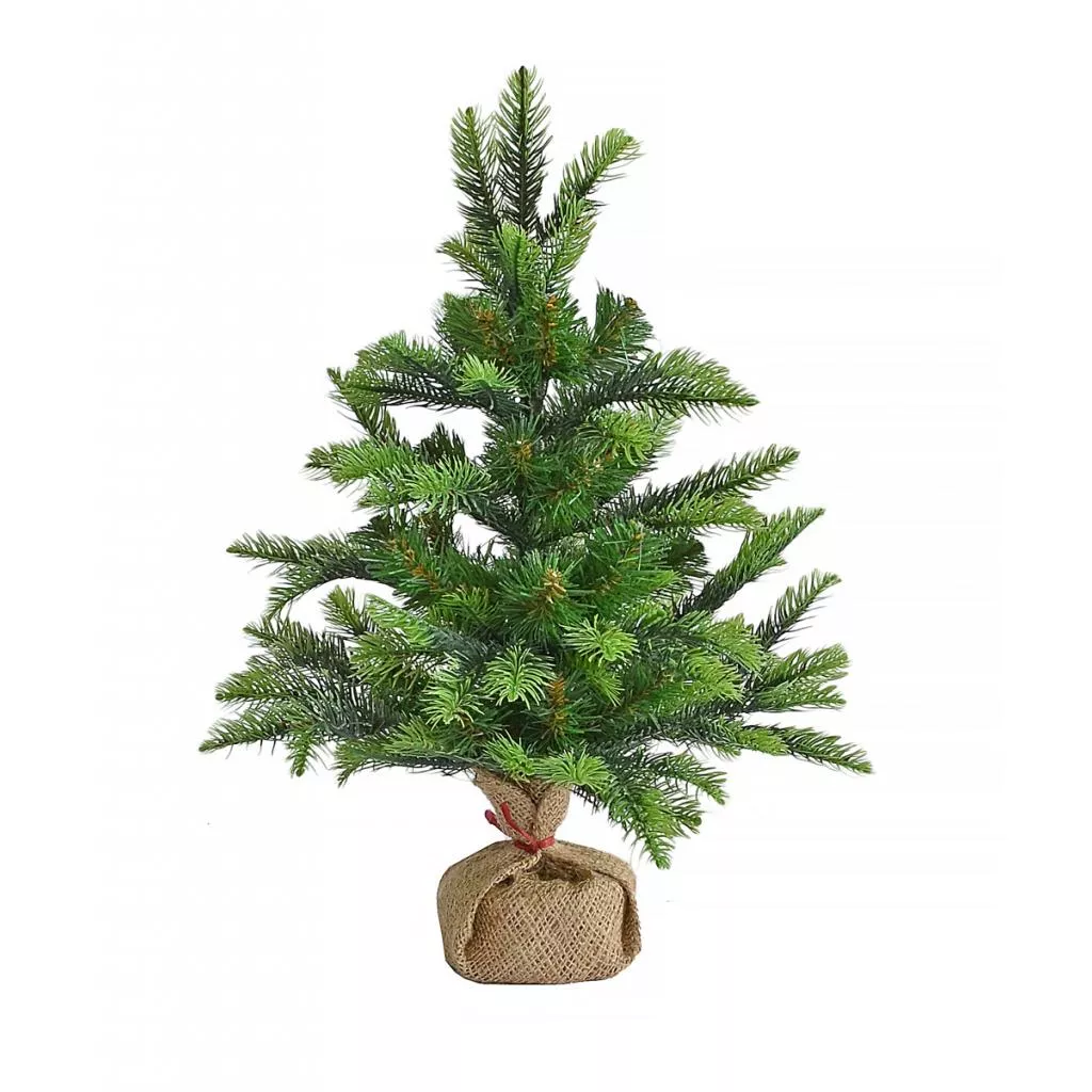 Искусственная маленькая ель – отличный декор для помещения в период новогодних праздников, который можно использовать, украшая множество поверхностей в доме, офисе, в торговых центрах. Поставьте такую ель на столе, полке, тумбочке, на прилавке магазина, в прикассовой зоне – и праздничное настроение окружающим будет гарантировано. Компактность и качественное исполнение данного украшения – это и есть его главные преимущества. Материал: ПВХ пленка шириной 6 см; проволока; деревянный пенек, обтянутый мешковиной. Высота: 45 см. Диаметр нижнего ряда: 42 см. Габариты: 0,45м.