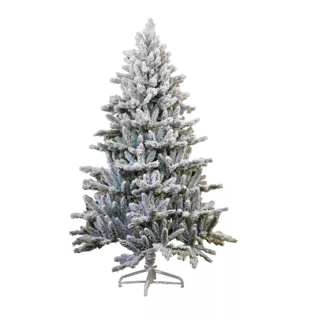 Искусственная заснеженная ель с литыми ветками максимально подобна натуральному дереву. Все используемые материалы экологически чистые, имеют противопожарные свойства. Большим плюсом искусственной елки является её долговечность, а сборка конструкции не отнимет много времени. Красивое и пышное новогоднее дерево будет ежегодно наполнять дом радостью и благополучием в рождественский период. Материал: ПВХ пленка шириной 6 см; литые ветки; металл; проволока. Высота: 210 см. Диаметр нижнего ряда: 130 см. Ствол ели состоит из двух частей + верхушка. Подставка ели — это металлическая крестовина с болтами, закрепляющими ствол. Габариты: 2,10 м.