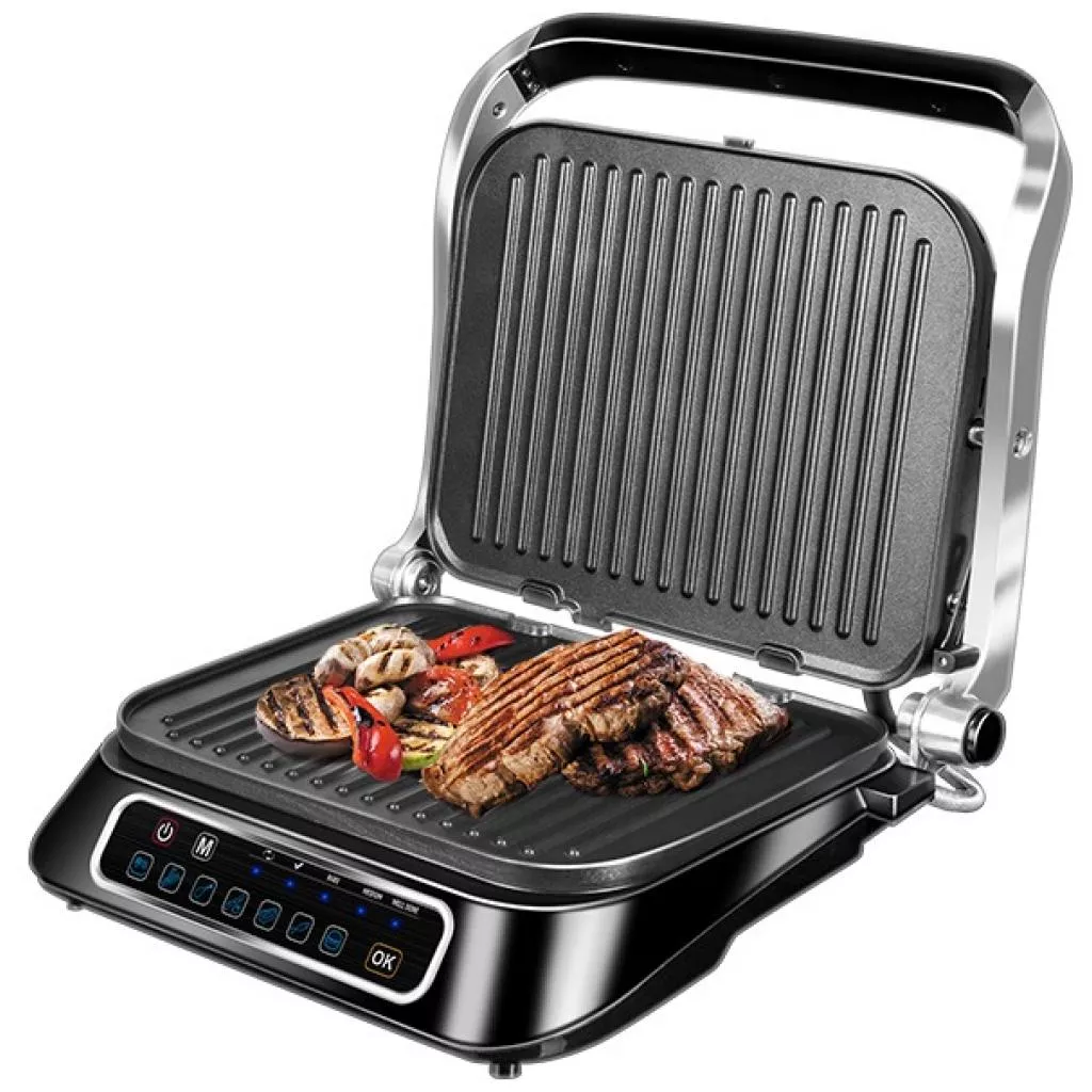 Если вы хотите порадовать близких сочными блюдами барбекю, раскройте гриль на 180° и используйте для жарки две панели. На открытых панелях удобно делать легкие закуски из морепродуктов барбекю, жарить овощи или карамелизовать фрукты для оригинальных десертов.