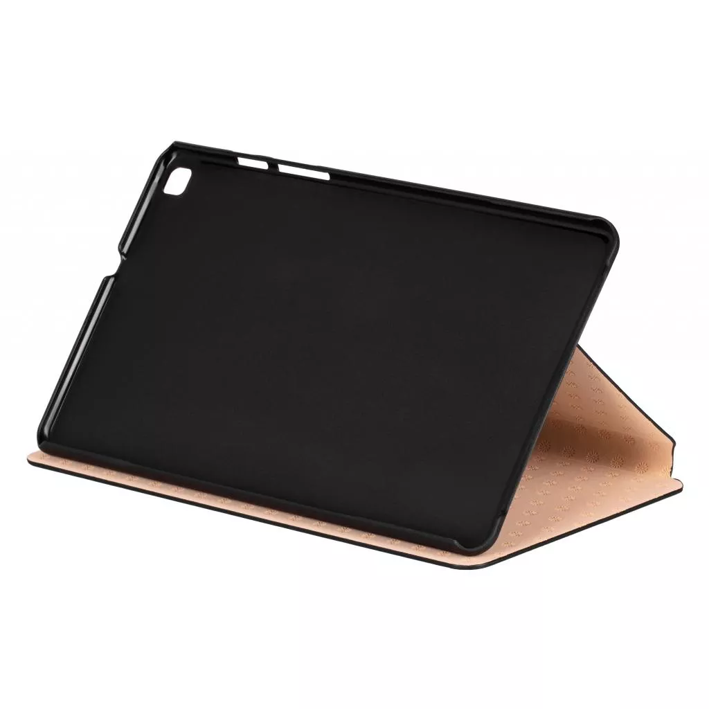 Внешняя часть обложки выполнена из экокожи, внутренняя — из микрофибры, а фиксатор с поликарборната. Благодаря специальным рельефным насечкам на внутренней пластиковой части, стенд может быть установлен в любое удобное положение. Обложка фиксируется с помощью магнита.