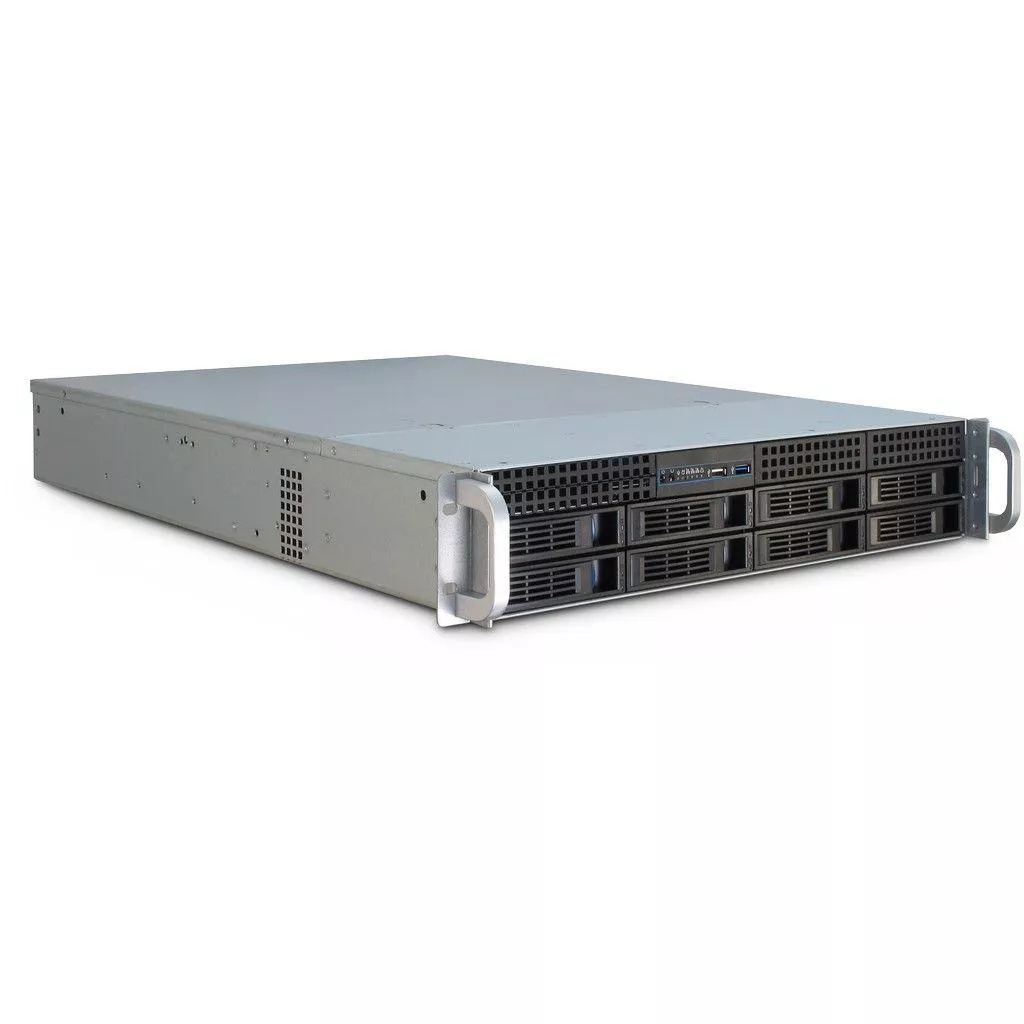 Inter-Tech 2U-2408 — корпус из класса Rackmount выполнен из качественной стали, на передней панель находится LED индикаторый Power, HDD Activity и Сетевой сигнал активности х 3. В комплекте предоставлены ручки для удобство изымания корпуса из стоечных шкафов. Данный корпус отлично впишется в любую серверную стойку либо серверный шкаф размером U2.