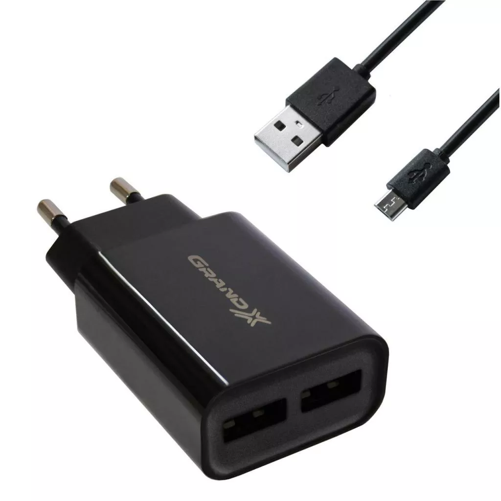 Зарядное устройство Grand-X 5V 2.4A 2xUSB + cable USB-microUSB (CH-45UMB)