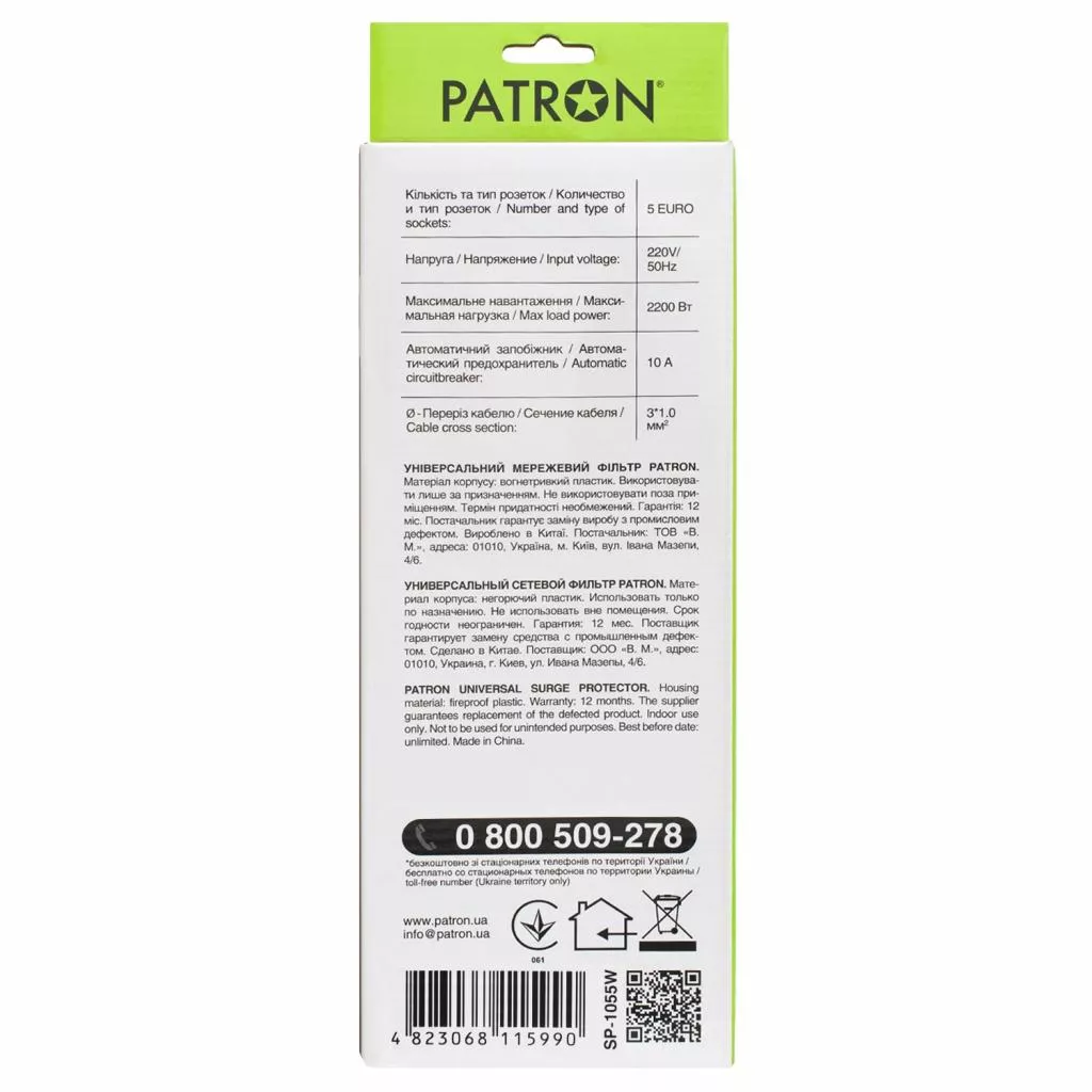 Приобрести Сетевой фильтр питания PATRON 5m (SP-1055W), 5 розеток White (EXT-PN-SP-1055W) Вы можете в компании "А-ТЕХНО", оформив заказ на этом сайте через корзину или позвонив по указанным телефонам.