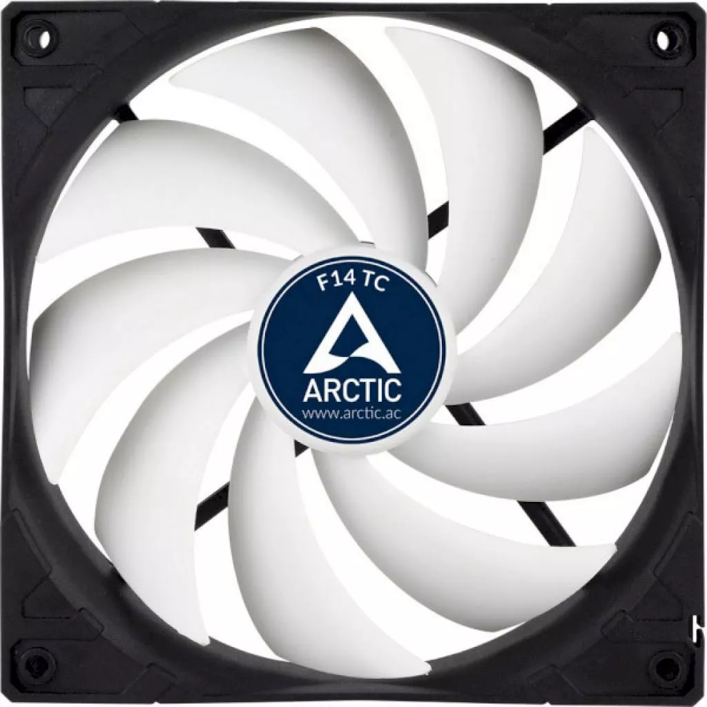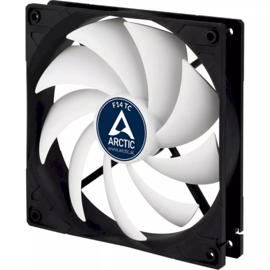 Корпусной вентилятор Arctic F14 TC — мощный воздушный поток и высокое статическое давление при низком уровне шума. Имеет длительный ресурс. Установка — корпус ПК, процессорный кулер.