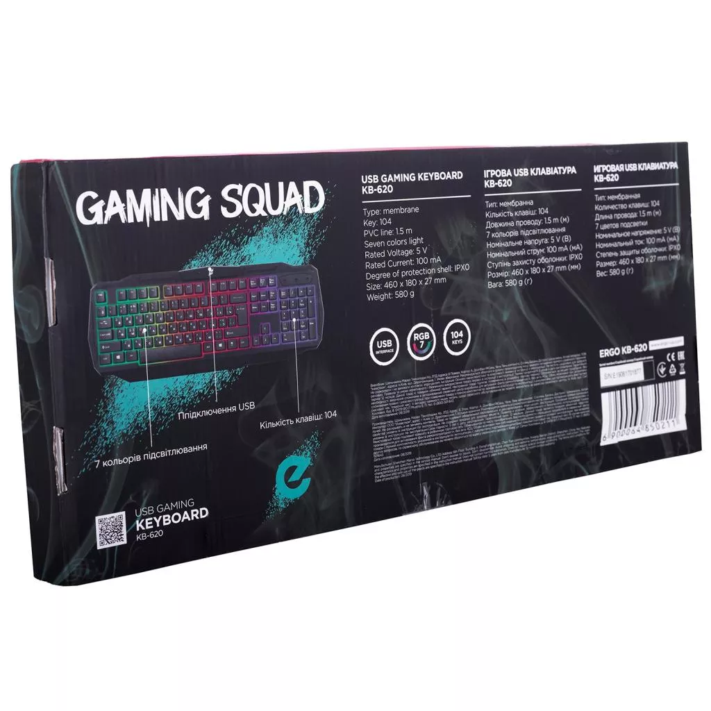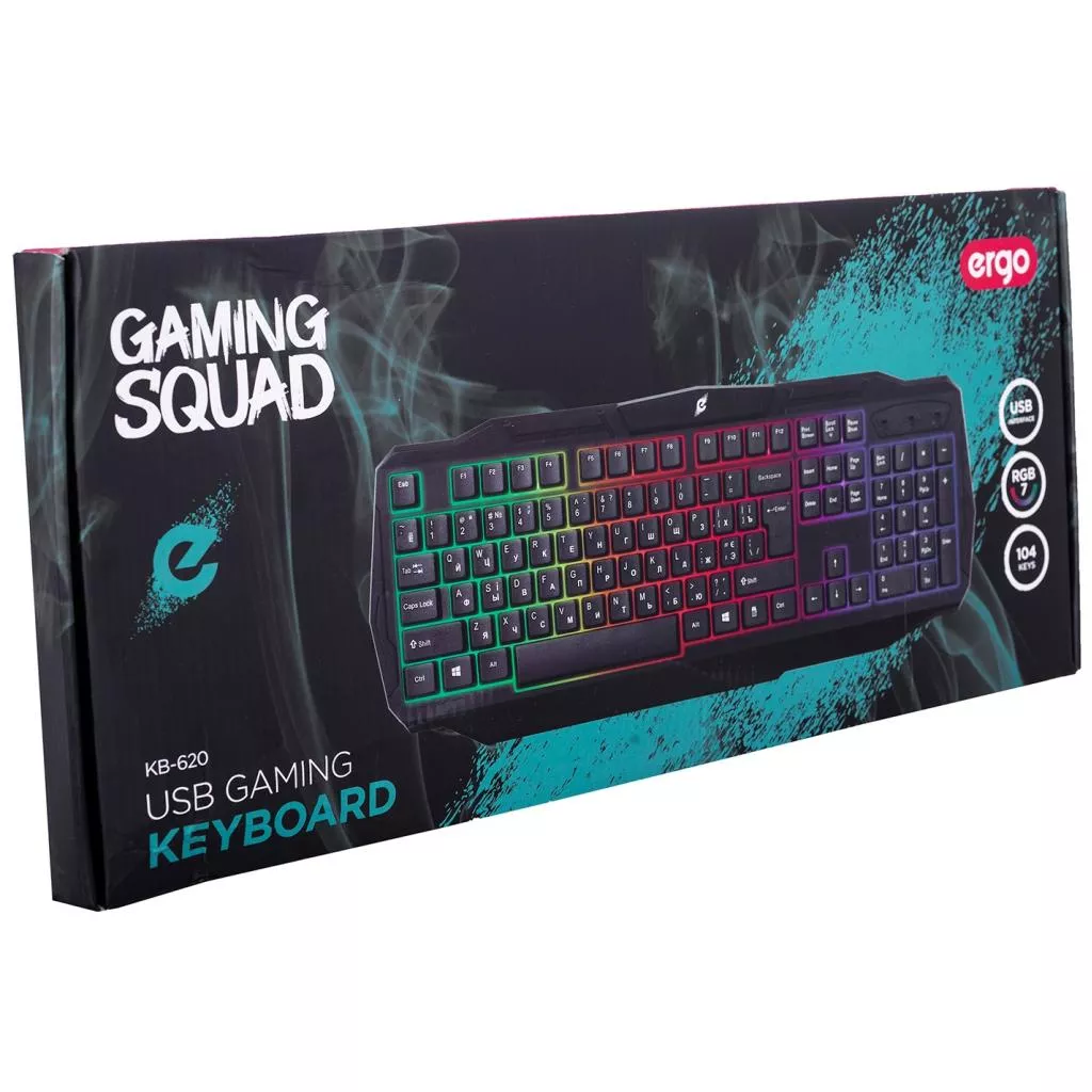 Игровая клавиатура ERGO KB-620 – отличный выбор для тех, кто любит динамичную игру. Стильная и эргономичная, она занимает оптимальное пространство на игровом столе и станет незаменимым помощником для начинающих и профессиональных геймеров. Мембранная клавиатура оснащена 104 клавишами, которые обеспечивают комфортную игру или набор текста.
