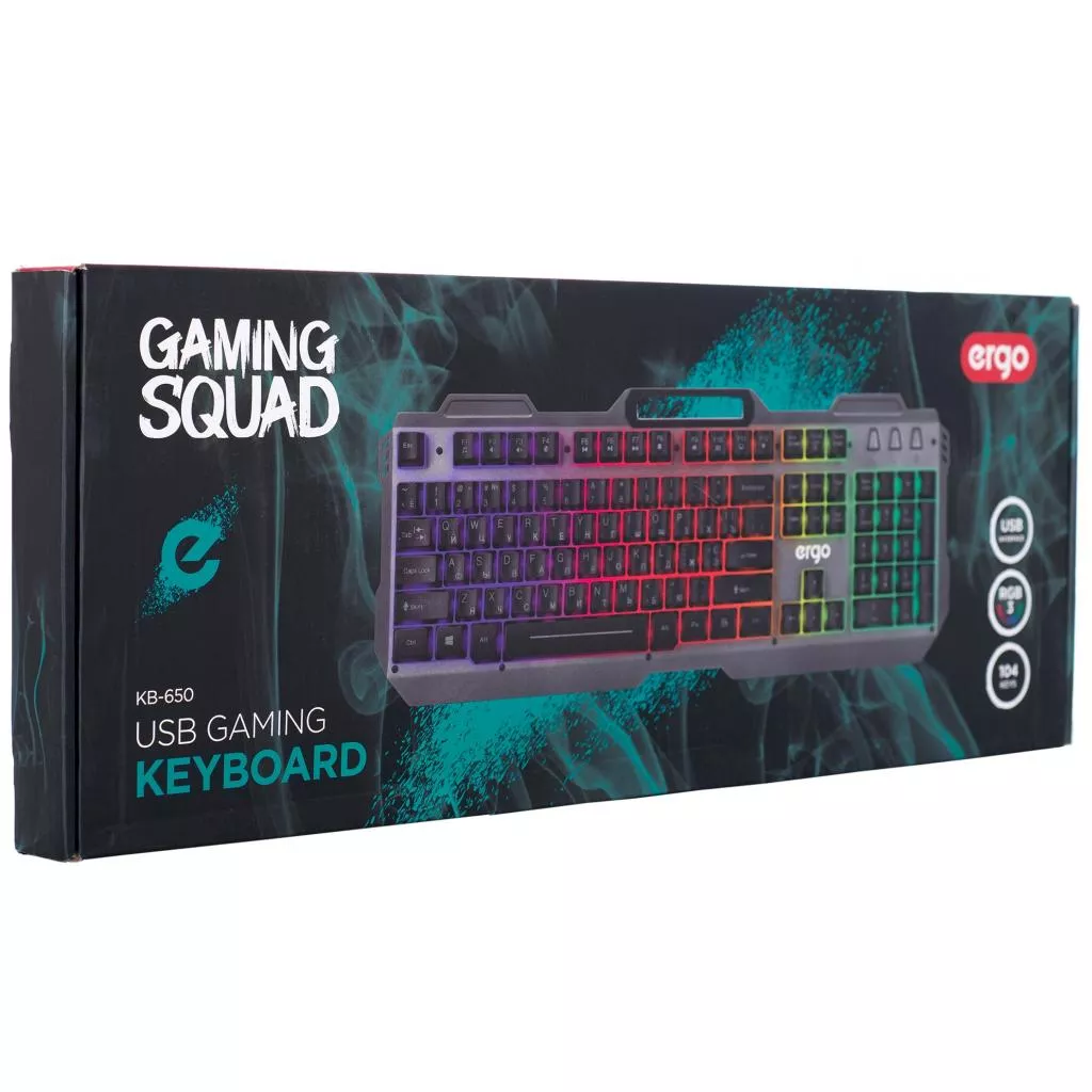 Игровая клавиатура ERGO KB-650 – идеальная клавиатура для лучшей игры. Стильная и эргономичная, она занимает оптимальное пространство на игровом столе, а специальная конструкция позволяет удобно размещать запястья, благодаря чему они не напрягаются и можно оставаться в игре еще дольше. Мембранная клавиатура оснащена 104 клавишами, которые обеспечивают комфортную игру или набор текста.