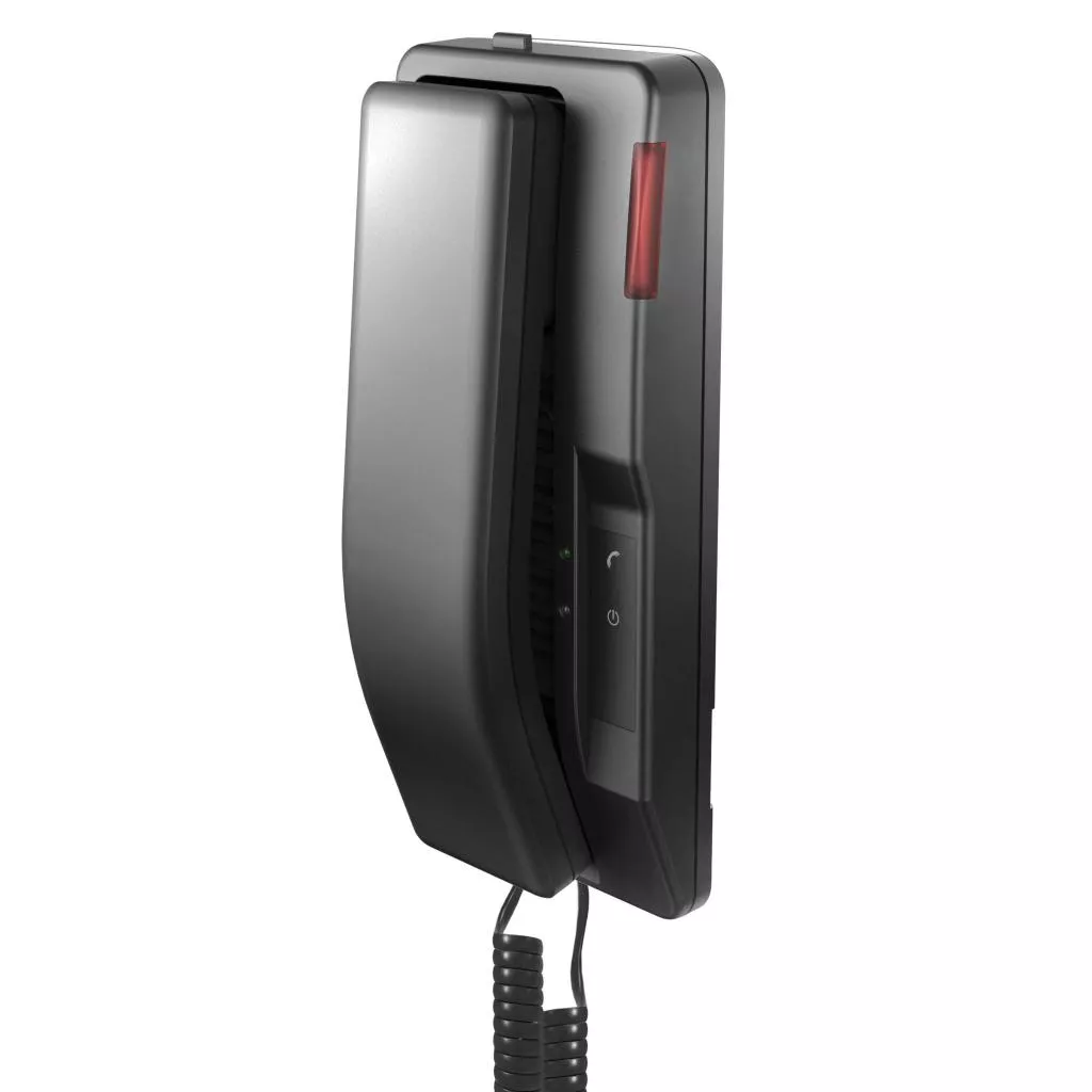 Лицевая панель может изменяться в соответствии с требованиями отеля. Имеет три режима работы: телефонная трубка/спикерфон/гарнитура.