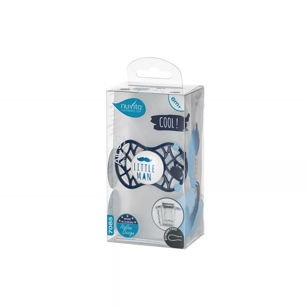 Пустышка симметрическая Nuvita Air55 Cool . Пластинка соски на 55% состоит из воздуха обеспечивая почти полную аэрацию области вокруг рта, избегая скопления слюны, которая может раздражать кожу. Защитный колпачок для соски для поддержания чистоты соски и стерилизации в микроволновой печи простым добавлением воды.