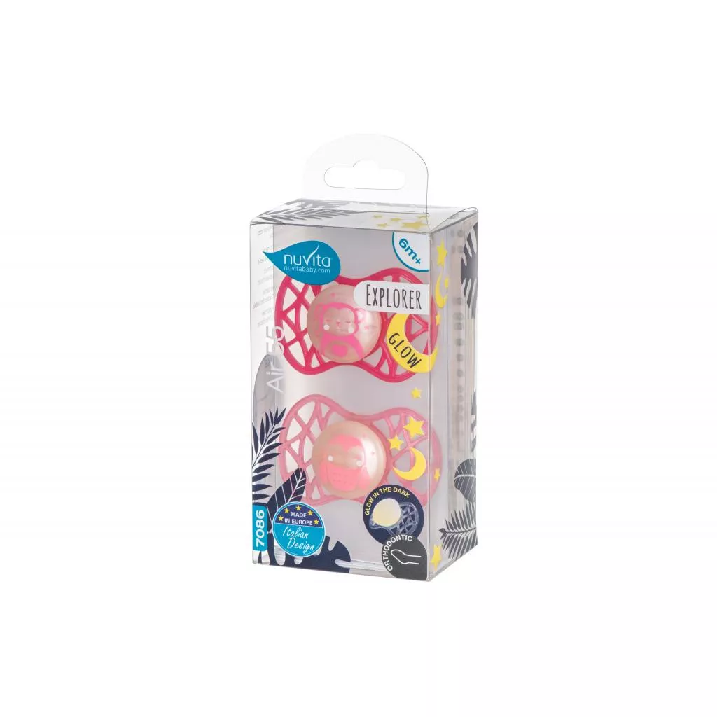 Пустышка Nuvita NV7086 Air55 Explore ортодонтическая 6m+ светящаяся в темноте (обезьяна, сова). Пластинка соски на 55% состоит из воздуха обеспечивая почти полную аэрацию области вокруг рта, избегая скопления слюны, которая может раздражать кожу.