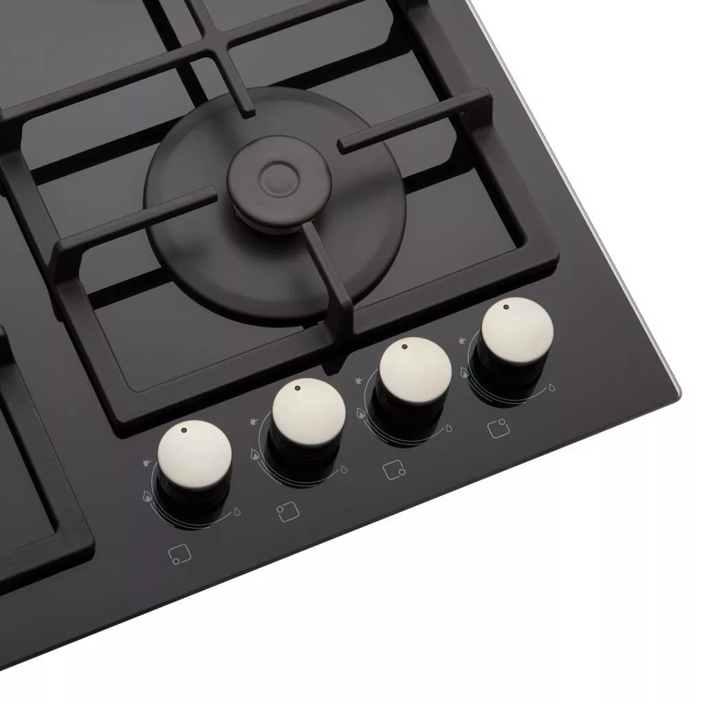 Варочная панель Eleyus VITA 60 BL CWF имеет четыре конфорки для более комфортного приготовления еды. Они удобно расположились в форме квадрата по всей площади устройства. Самая большая конфорка WOK мощностью в 2,5 кВт имеет существенное отличие от остальных. Использование тройного ряда пламени способствует более быстрому приготовлению пищи. Две стандартные конфорки имеют мощность по 1,75 каждая, и одна маленькая – 1 кВт.