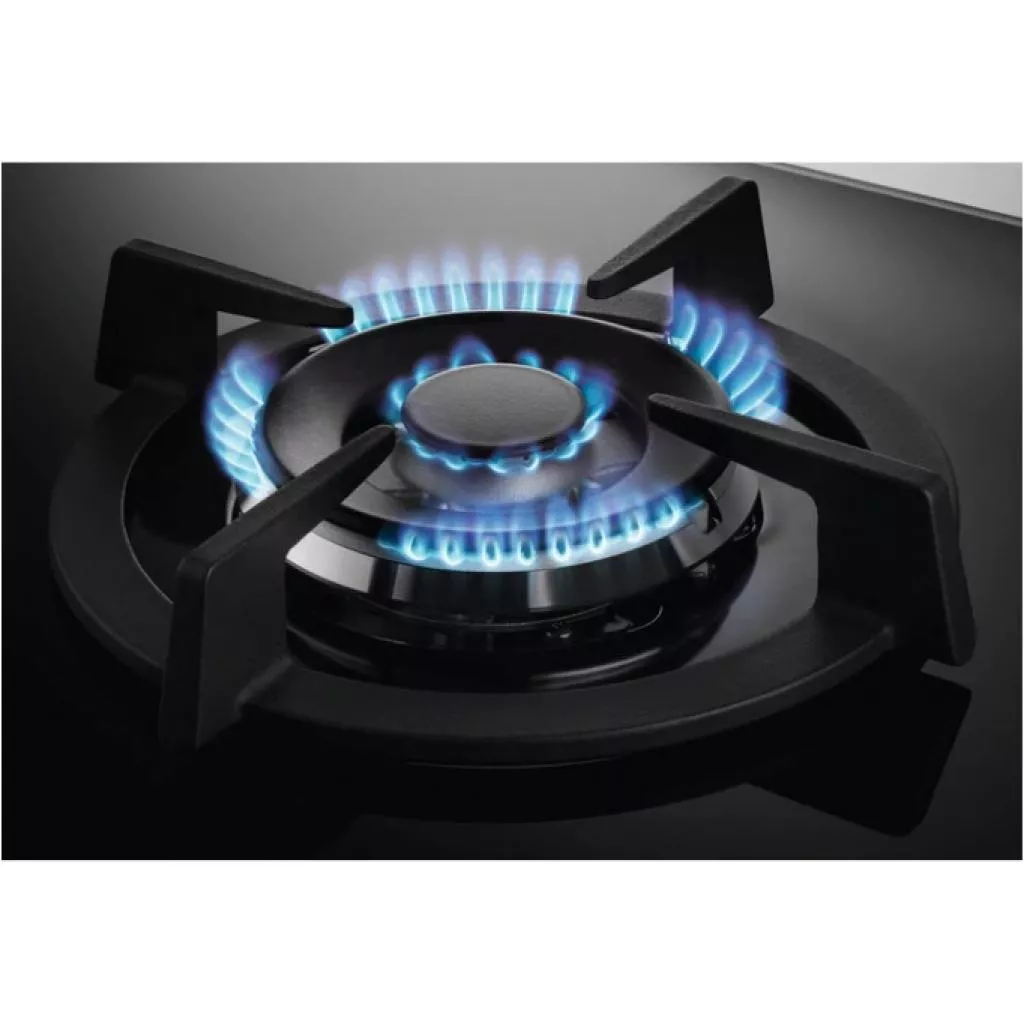 Мгновенный нагрев чистым пламенем газовых горелок плюс гладкая, легко очищаемая стеклянная поверхность этой варочной панели дает вам лучшее из обоих миров.