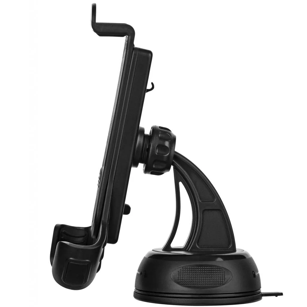 Автомобильный держатель для мобильных устройств. Для крепления в авто используется надежная присоска с фиксатором, а для удержания мобильных устройств предусмотрено зажим. Конструкция поддерживает регулировку наклона.