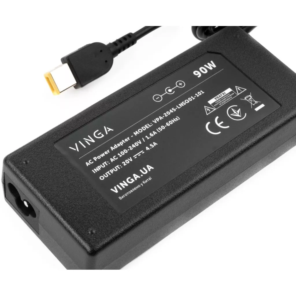 Блок питания к ноутбуку Vinga Lenovo 90W 20V 4.5A разъем square (VPA-2045-LNSQ01-101) - купить в магазине цифровой техники a-techno.com.ua