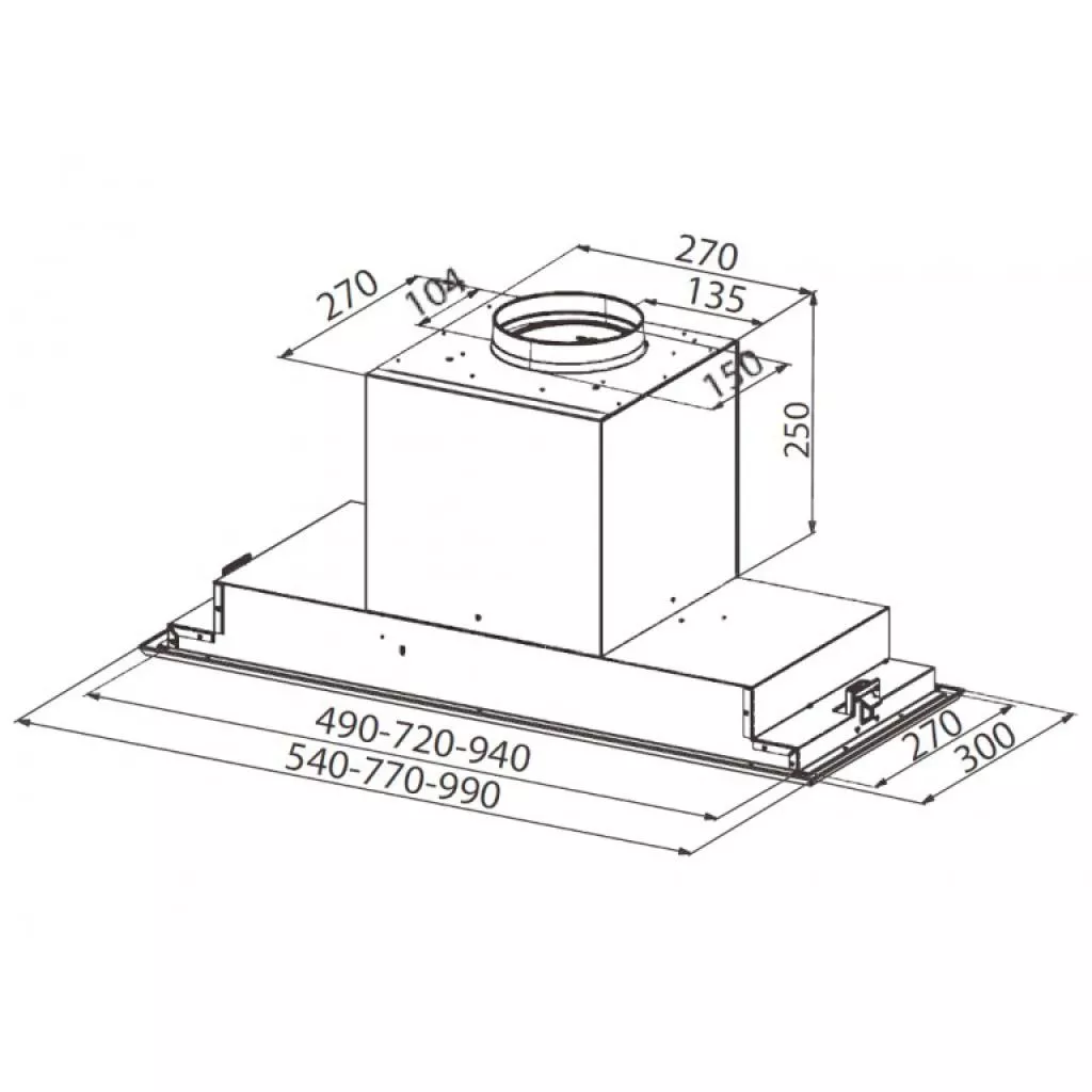 Представленная модель является полновстраиваемой – основная часть ее конструкции встраивается в кухонный шкаф, благодаря чему вытяжка смотрится не громоздко, не занимает много места над варочной панелью. Производительности прибора достаточно для обеспечения качественного очищения воздуха бытовых кухонь среднестатистического размера, либо на небольших кухнях заведений общественного питания. Совмещение рециркуляции и отвода воздуха вместе с наличием трех скоростных режимов работы позволяет добиться оптимальной очистки воздуха при различной степени задымленности и концентрации ароматов. Вытяжка имеет таймер, позволяющий задавать время ее работы, после которого прибор самоотключается, что очень удобно при необходимости покинуть помещение кухни.