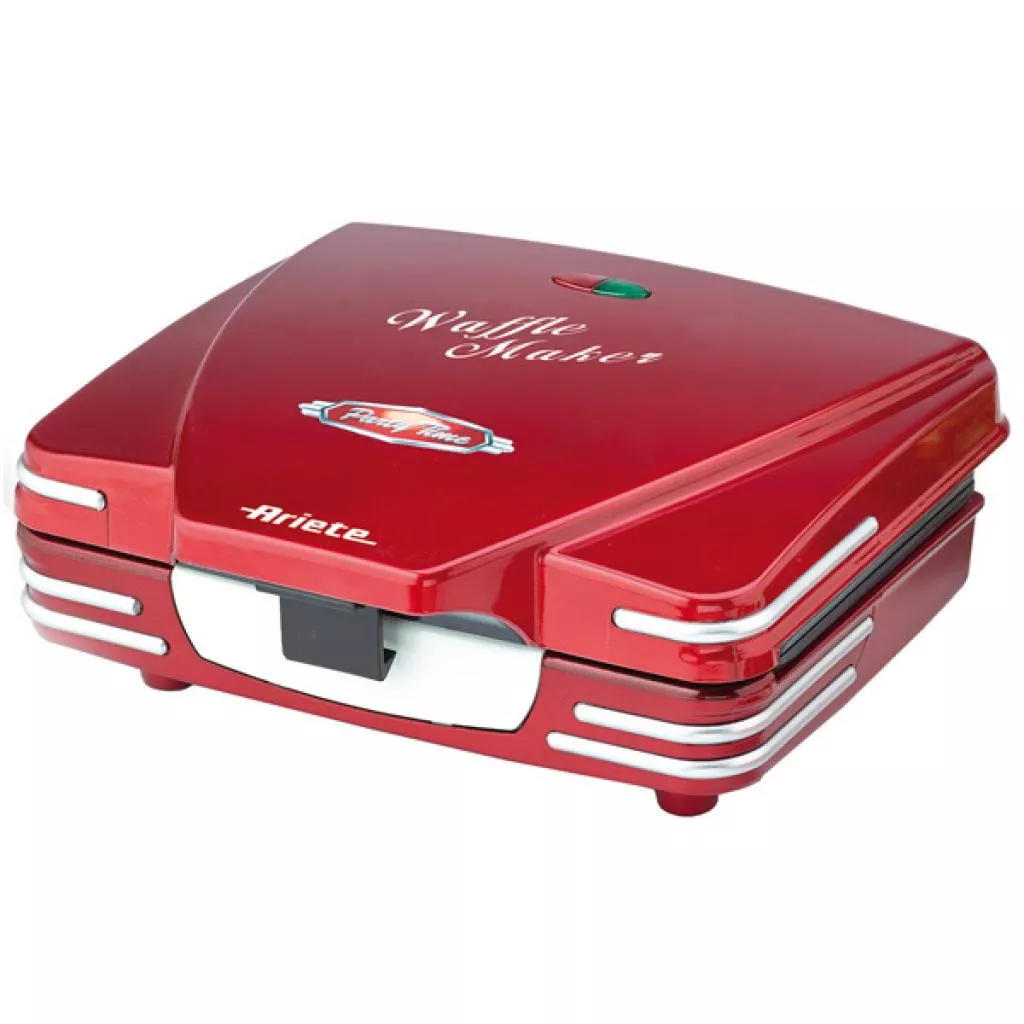 Прибор для приготовления вафель Ariete 187 — устройство, которое понравится настоящим лакомкам. Любите вафли со всевозможными начинками? Теперь вы легко сможете сделать их дома. Такое блюдо станет отличным угощением для вечеринки, не даро прибор относится к линейке Party Time. Вафельница сделана в стиле ретро, она имеет привлекательный внешний вид, эргономичную конструкцию, очень удобная. Такая вафельница компактна и поместится даже на крошечной кухне. Она станет отличным подарком для сладкоежек.