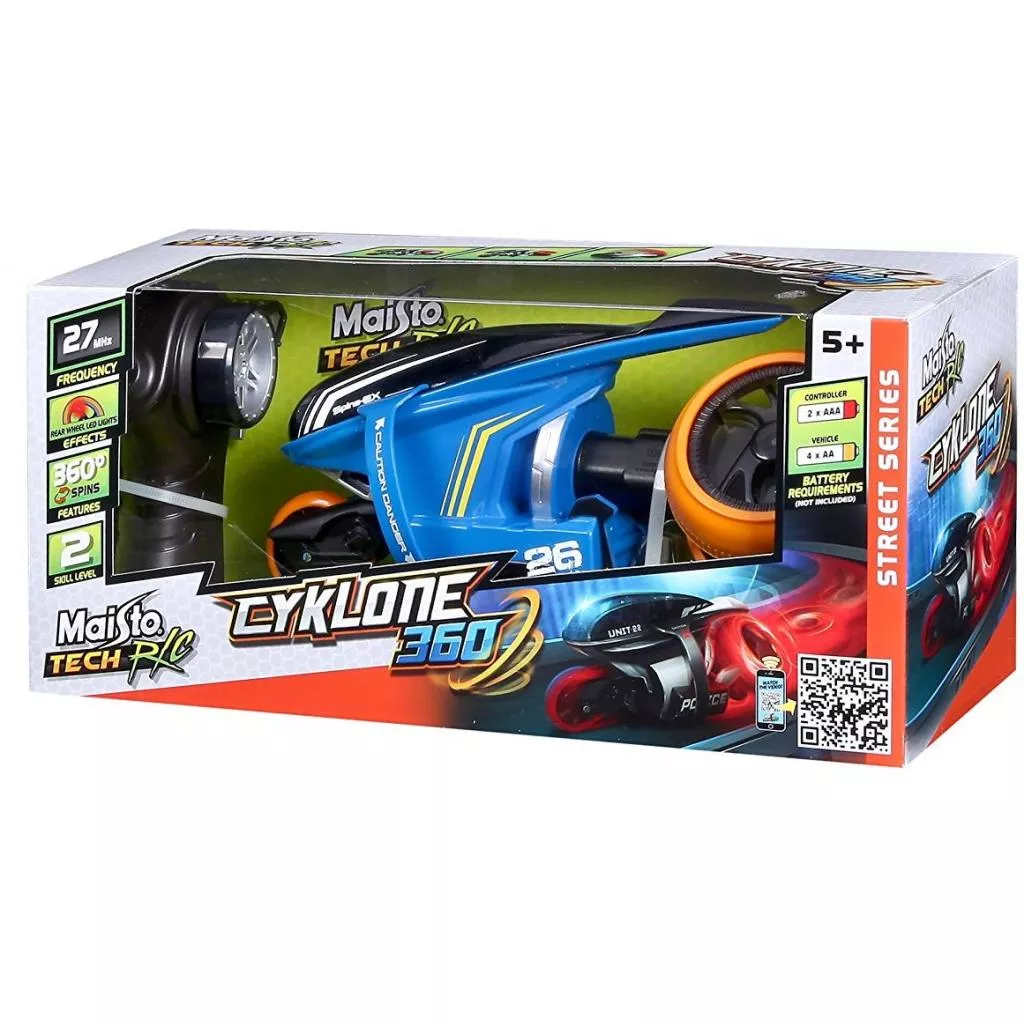 Мотоцикл на радио управлении Cyklone 360 от компании Maisto Tech – это настоящий ураган, опережающий все на своем пути. Этот необычный мотоцикл обязательно понравится ребенку своим дизайном и функциональностью. Задние колеса мотоцикла имеют светодиодную подсветку.