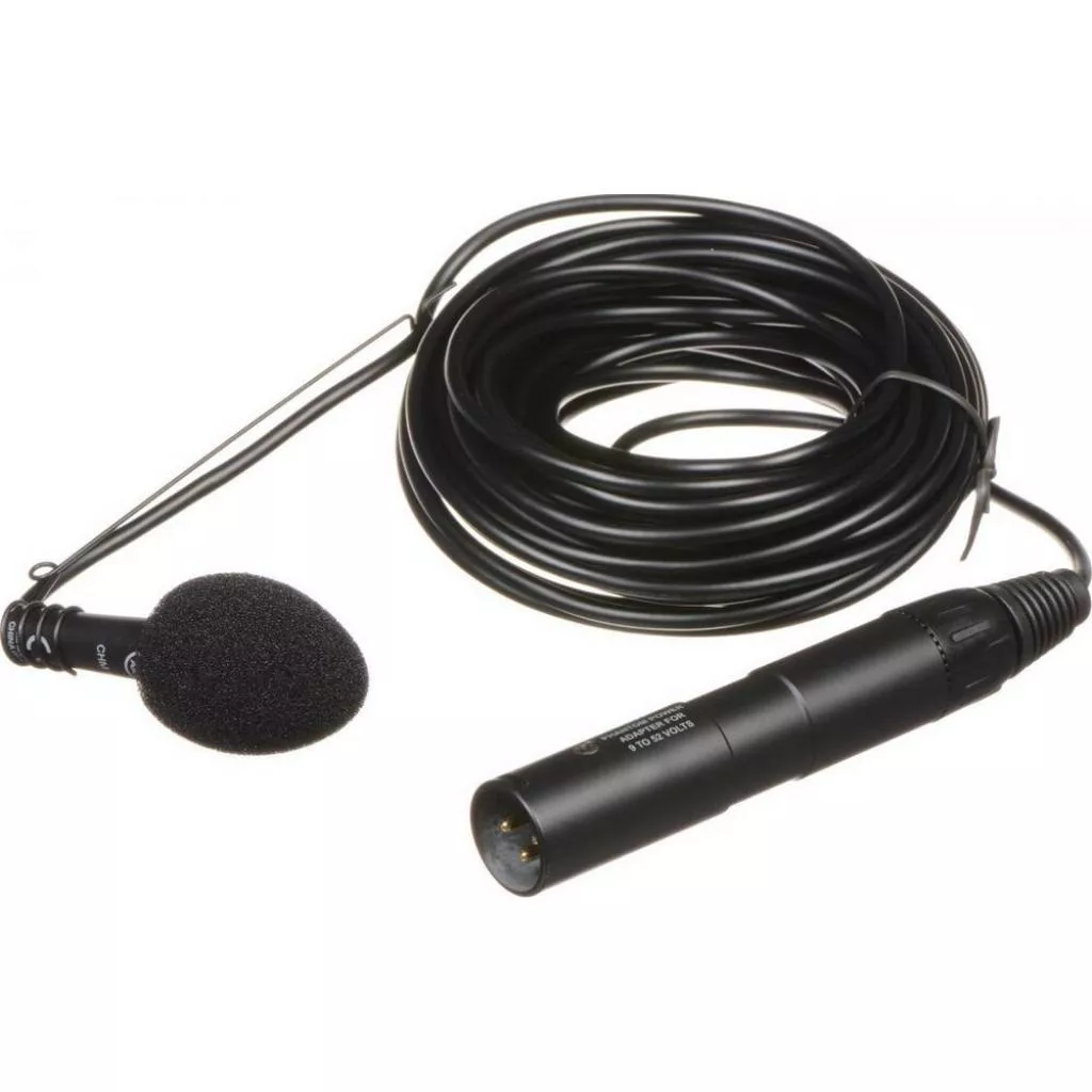 Специальный кабель длиной 10 м (не идет в комплекте), специально обработанный, чтобы свести к минимуму скручивание, и подвесной зажим из пружинной стали для точного выравнивания микрофона надежно удерживают микрофон на своем месте. Прилагаемый адаптер фантомного питания подключается к любому стандартному входу микшера с напряжением от 9 до 52 В.