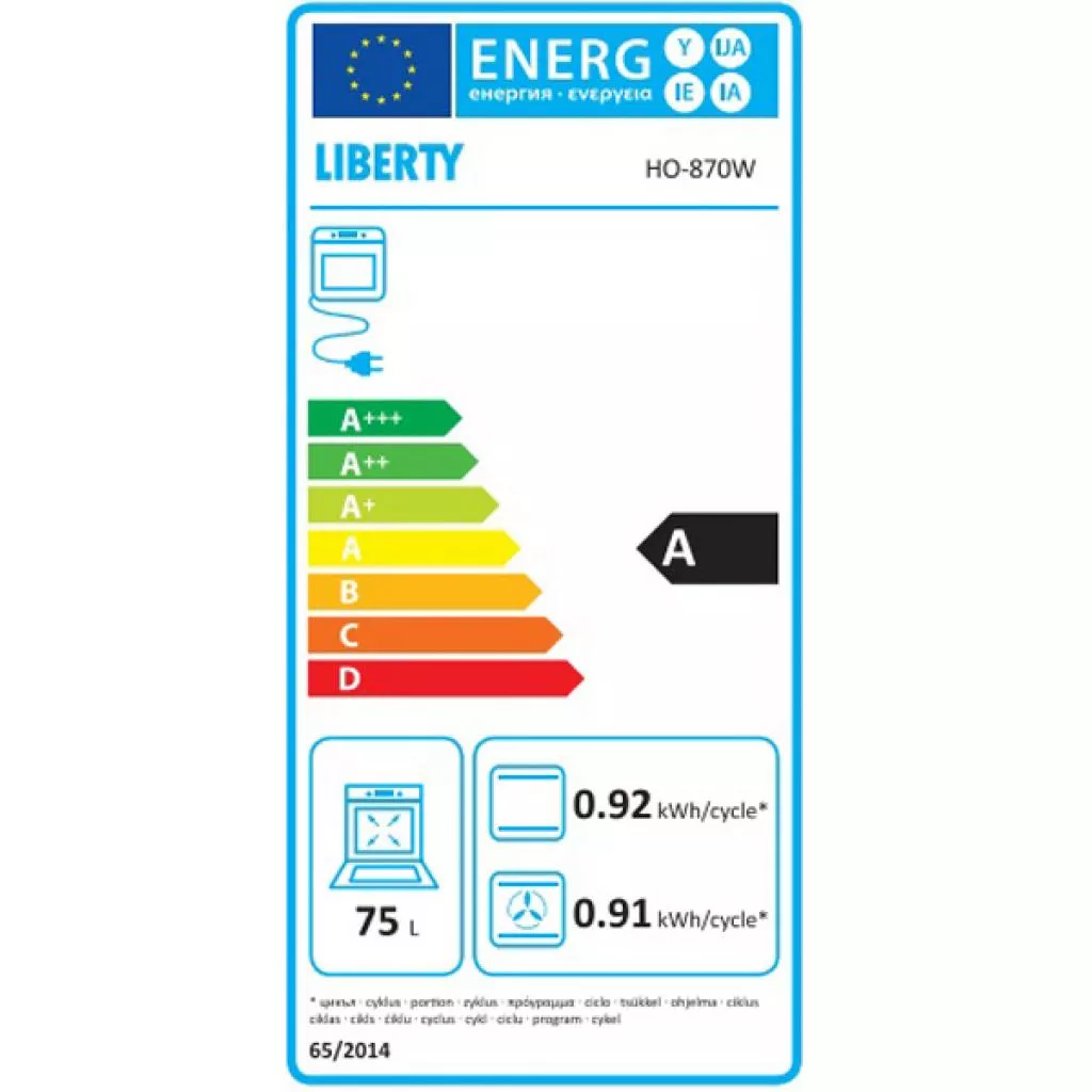 В увеличенном объеме духовки Liberty HO-870W (75л) вы сможете приготовить не только крупных цыплят, но и индейку с вкусной корочкой.Электрический духовой шкаф экономичный, как по цене, так и по стоимости коммунальных платежей (класс энергопотребленияА).Liberty HO-870Wв отличие от газовых духовых шкафов быстро набирает заданную температуру с точностью до пяти градусов и поддерживает ее на протяжении всего времени приготовления блюд.