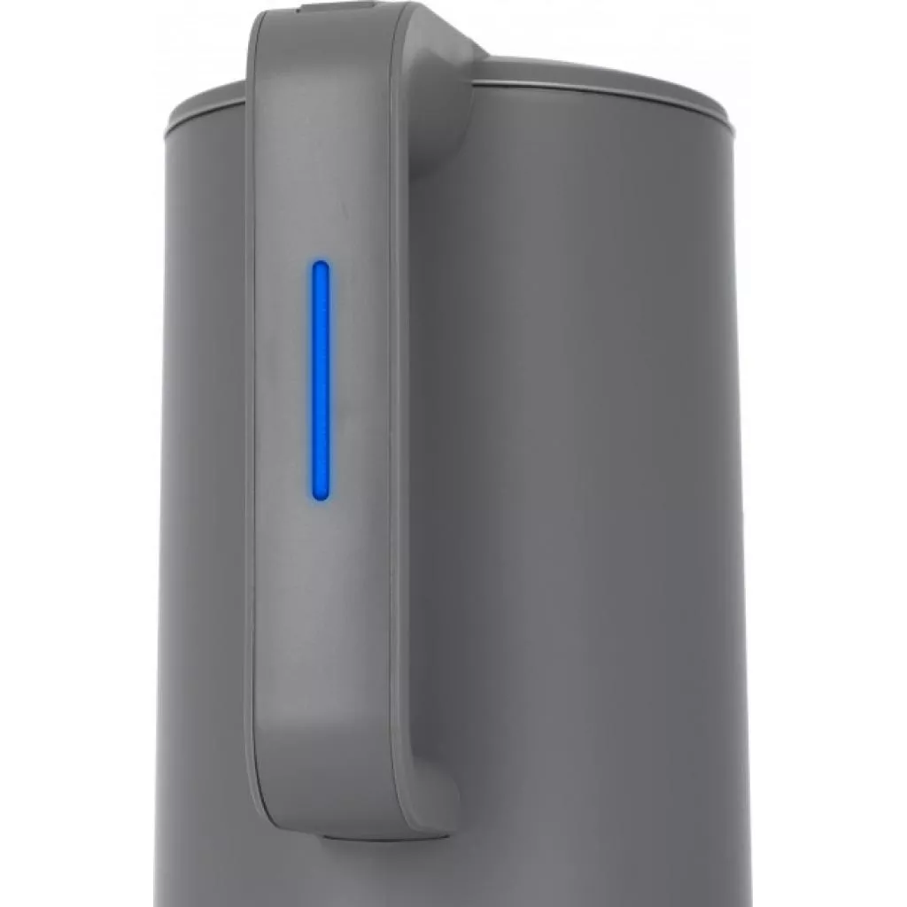 На рукоятке расположен световой индикатор: он горит ярким синим цветом, когда чайник находится в активной стадии работы. Так вы сможете контролировать его подключение к сети и понимать, что идет нагрев.