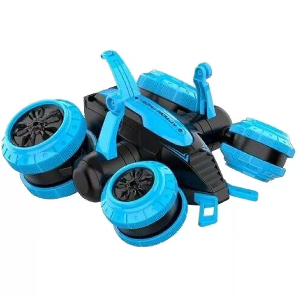 Машинка с легкостью выделывает такие трюки как «перевертыш» и разворот на 360 градусов, поэтому с ней можно устраивать не только соревновательные забеги, но и потрясающие автомобильные шоу! Корпус машинки состоит из 2-х подвижных частей (2 колеса), которые способны вращаться на 360 градусов. Машинка способна преодолевать сложные препятствия, благодаря мощному корпусу и большим колесам.