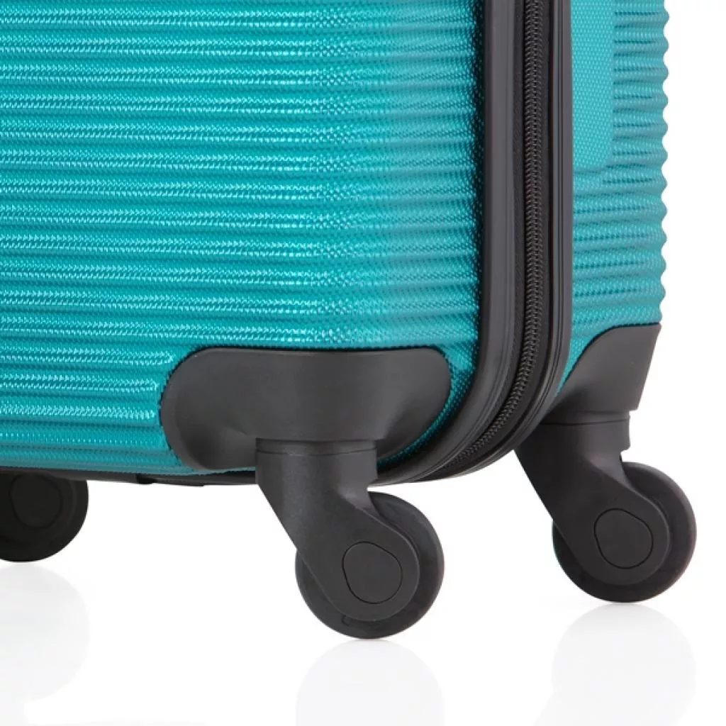 Чемодан оснащен четырьмя полноповоротными колесами с возможностью независимого разворота каждого колеса на 360°. Системой предусмотрено равномерное перераспределения нагрузки на каждое колесо, что в свою очередь способствует плавному качению и маневренности чемодана, прилагая при этом минимум усилий. Колеса изготовлены из высокотемпературного термопластичного полиуретана (TPU). Материал обладает прочностью сравнимой с пластиком, гибкостью силикона, а также имеет повышенную устойчивость к перепадам температур. Отличительной особенностью колес из TPU материала является снижение шума до минимума при качении чемодана по неровной поверхности. Благодаря устойчивости к истиранию материал колес отличается длительным сроком эксплуатации.