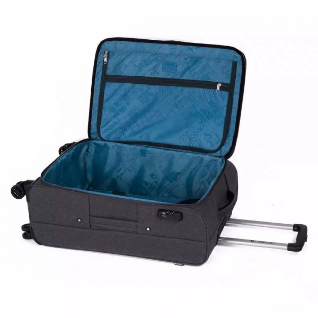 Чемодан оснащен четырьмя спаренными роликовыми колесами из высокотемпературного термопластичного полиуретана (TPU). Материал обладает прочностью сравнимой с пластиком, гибкостью силикона, а также имеет повышенную устойчивость к перепадам температур. Отличительной особенностью колес из TPU материала является снижение шума до минимума при качении чемодана по неровной поверхности. Благодаря устойчивости к истиранию материал колес отличается длительным сроком эксплуатации.