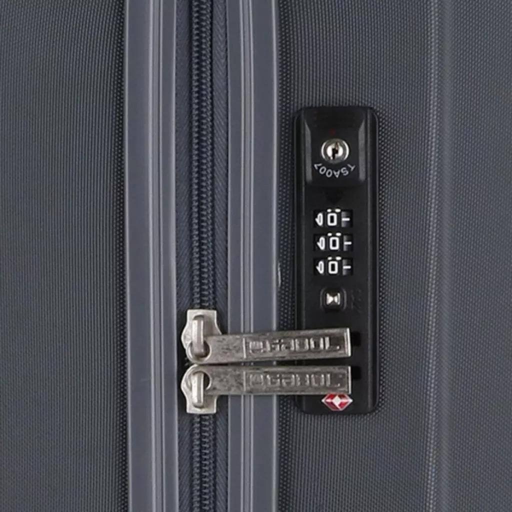 Чемодан оборудован фирменным кодовым замком с функцией таможенного досмотра TSA (Transportation Security Administration - Администрация по безопасности на транспорте). Таможенные службы совместно с Американской Ассоциацией по безопасности на транспорте (Transportation Security Administration или, сокращенно, TSA) получили абсолютное право, в целях безопасности, досматривать любой чемодан на колесах или сумку, показавшуюся им подозрительной. Агенты по безопасности на транспорте снабжены специальными TSA ключами, за которые они несут персональную ответственность. Благодаря наличию в замке функции TSA после досмотра ваши замки останутся целыми и невредимыми в отличии от багажа без функции TSA.