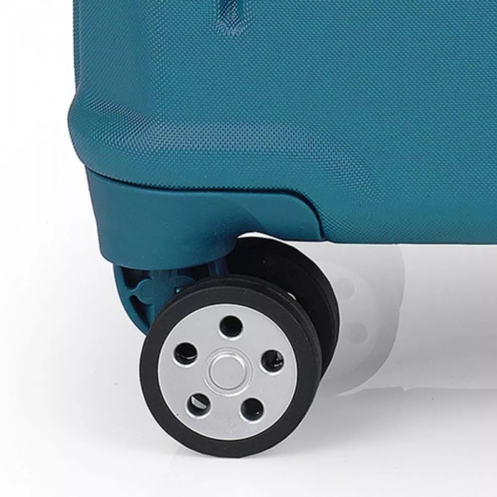 Колеса изготовлены из высокотемпературного термопластичного полиуретана (TPU). Материал обладает прочностью сравнимой с пластиком, гибкостью силикона, а также имеет повышенную устойчивость к перепадам температур. Отличительной особенностью колес из TPU материала является снижение шума до минимума при качении чемодана по неровной поверхности. Благодаря устойчивости к истиранию материал колес отличается длительным сроком эксплуатации.