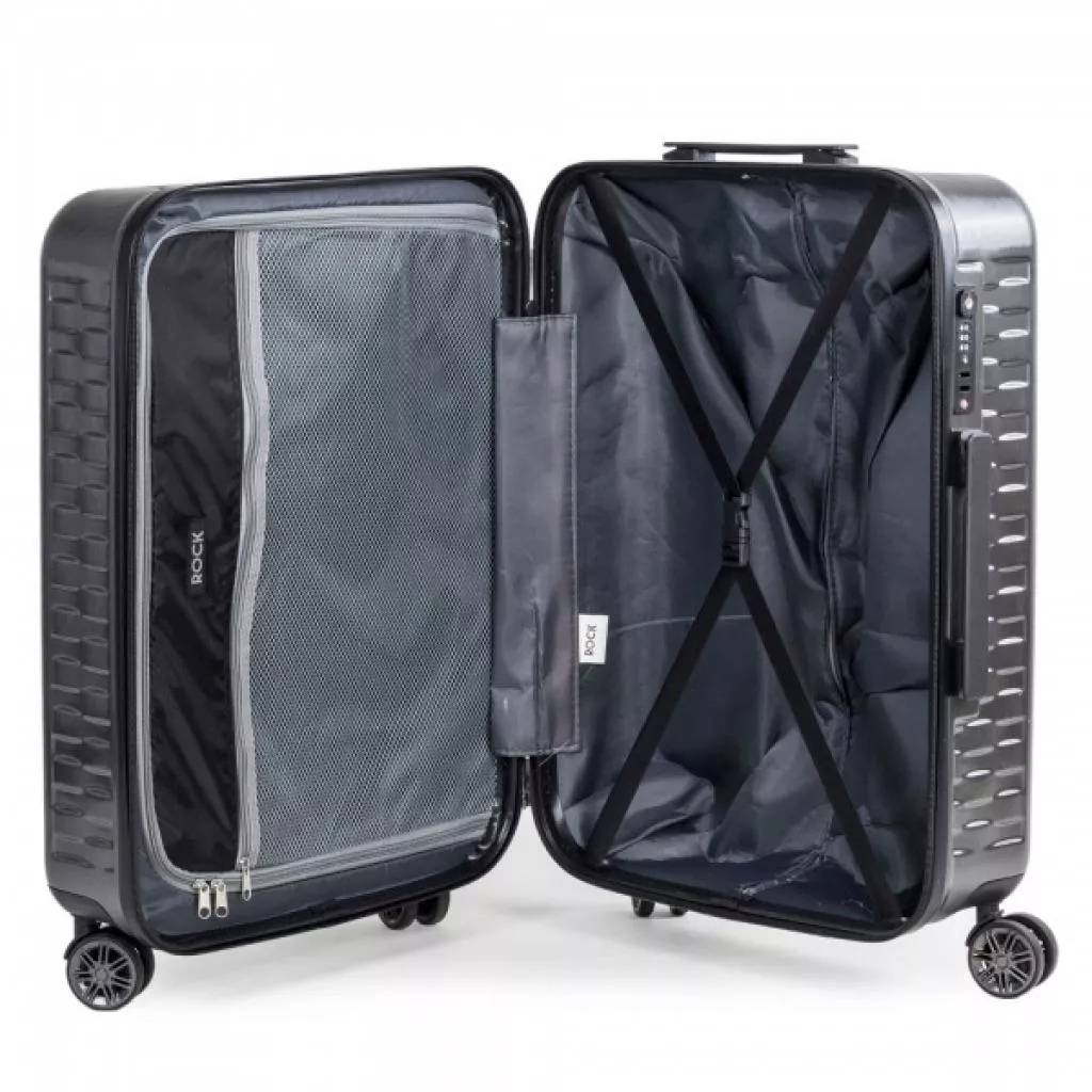 Новая Ultra-крепкая коллекция чемоданов Rock Allure выполнена из прочного, комбинированного материала - ABS-пластика и поликарбоната (PС), что очень важно для чемоданов, перевозимых в багажных отделениях. Чемоданы оснащены четырьмя спаренными полноповоротными колесами и выдвижной фиксируемой телескопической ручкой. Внутренний объем разделен перегородкой на два отделения и имеет ремни для фиксации вещей внутри.