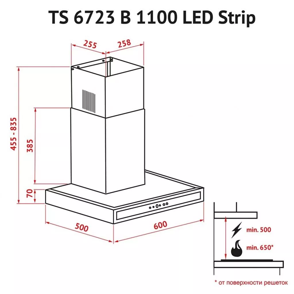 | Высота дымохода | 500-835 мм |
