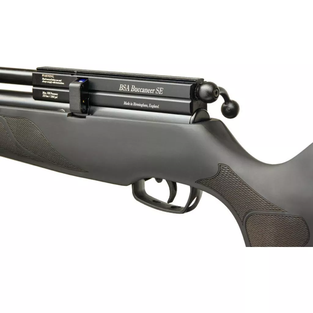 Новая винтовка Buccaneer SE - логическое продолжение и развитие идей популярной некогда модели Sportsman HV. Удобный эргономичный приклад, интегрированный манометр, двухступенчатый регулируемый спуск, 10-зарядный магазин, классический английский дизайн и доступность – вот основные слагаемые успеха новой модели от компании BSA.