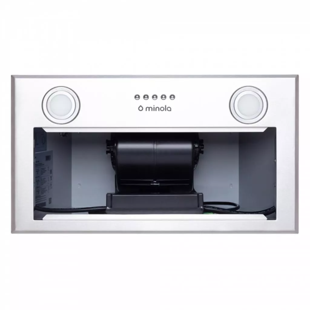 Модель Minola HBI 5222 700 LED умеет работать как на отвод, так и на рециркуляцию. Важно отметить, что второй вариант не требует подключения к вентиляционной шахте. Она оборудована алюминиевым жировым фильтром, позволяет установить фильтр угольный. Две светодиодные лампы обеспечивают объемное и приятное освещение.