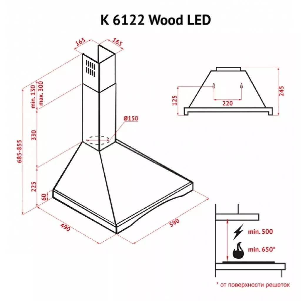 | Диаметр вентиляционной трубы | 150мм |