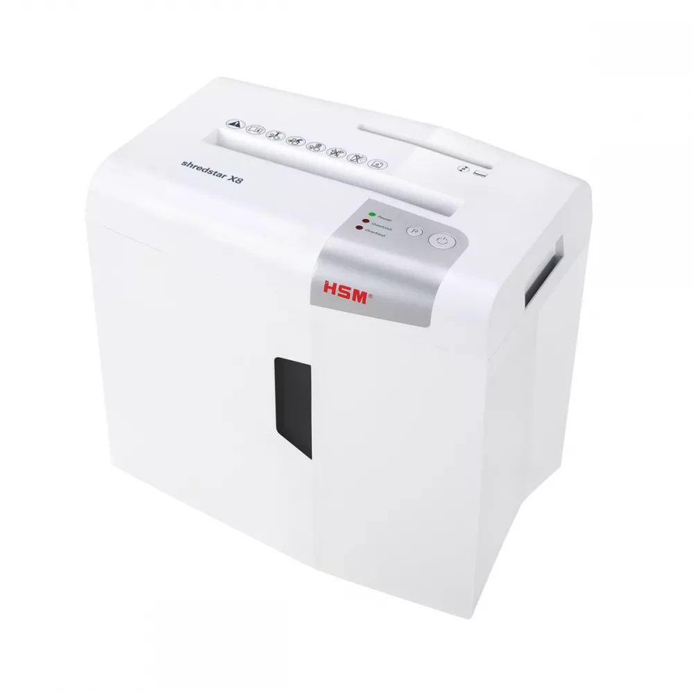 Уничтожитель документов, бумаги HSM shredstar X8 (4, 5x30). Перекрестная резка: 4, 5х30мм; Уровень секретности: 4; Уничтожает за раз: 9 листов; Ширина реза: 220мм; Уничтожает пластиковые карточки, CD; Объем корзины: 18л; Габариты: 345x245x385мм; HSM, Германия