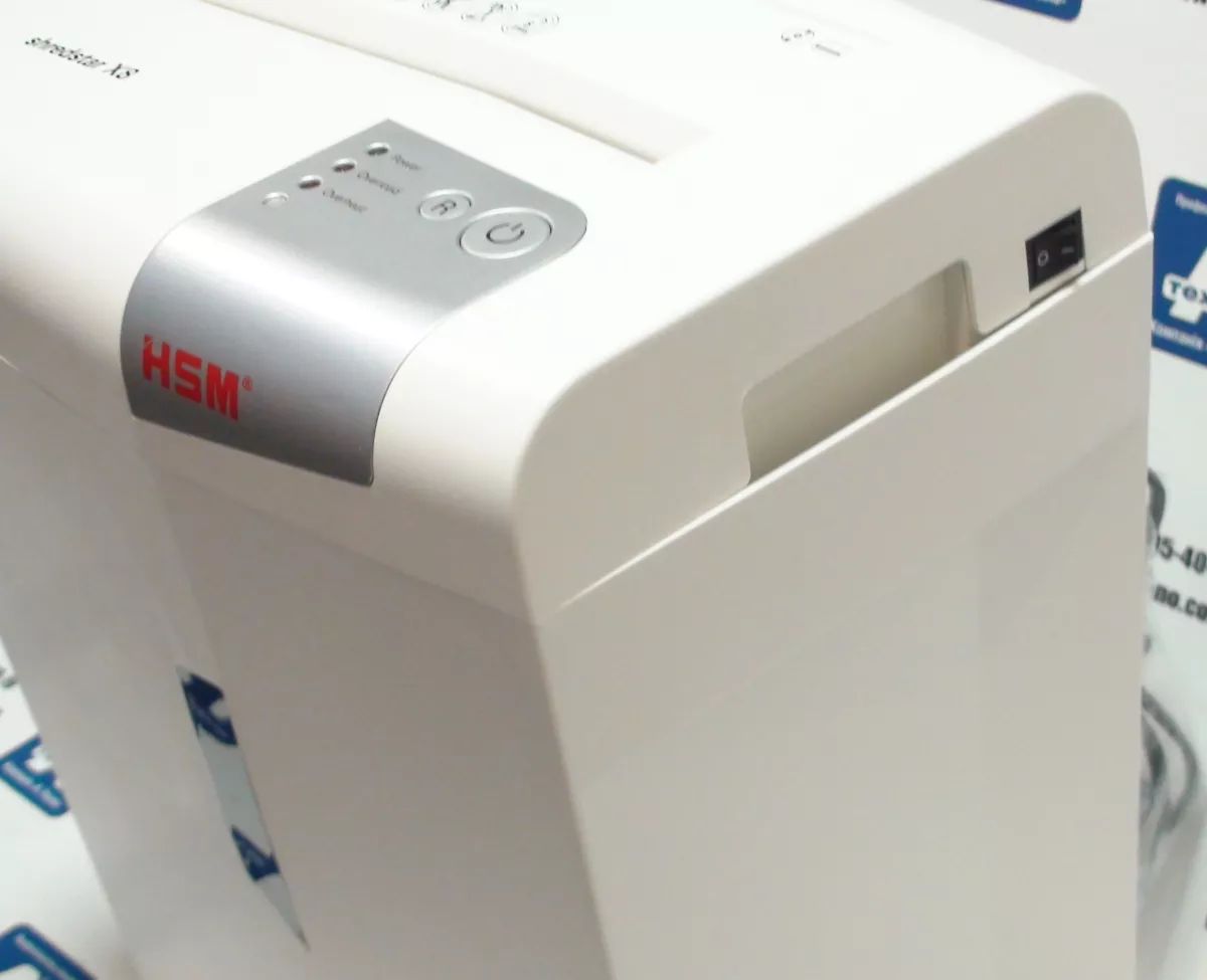 Уничтожитель документов, шредер shredMARK 1501X. Уничтожает 15 листов бумаги на кусочки размером 4х41 мм. Это соотвествует стандарту секретности DIN3, так как лист А4 формата разрезается на 380 кусочков. Имеют корзину емкостью 30 литров, которая легко выдвигается для опустошения от кусочков бумаги. Кроме того, в уничтожителях предусмотрены колесики для легкого перемещения по офису. Естественно, как любой шреддер для рабочей группы, shredMARK может без остановки уничтожать бумагу около 10 минут. Они могут уничтожать CD/DVD диски, кредитные и дисконтные карты, скрепки, скобы. Гарантия на уничтожитель бумаги Shredmark 1501X - 1 год.