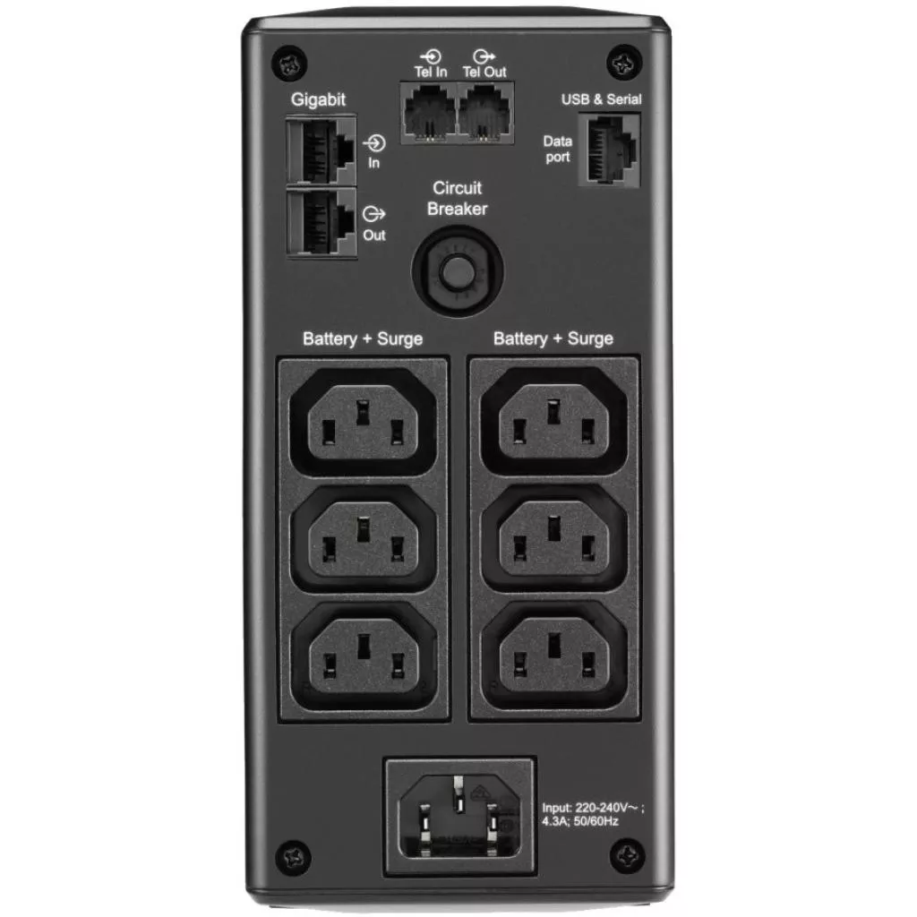Разъёмы: 6 (батарейное резервное питание) IEC 320 C13