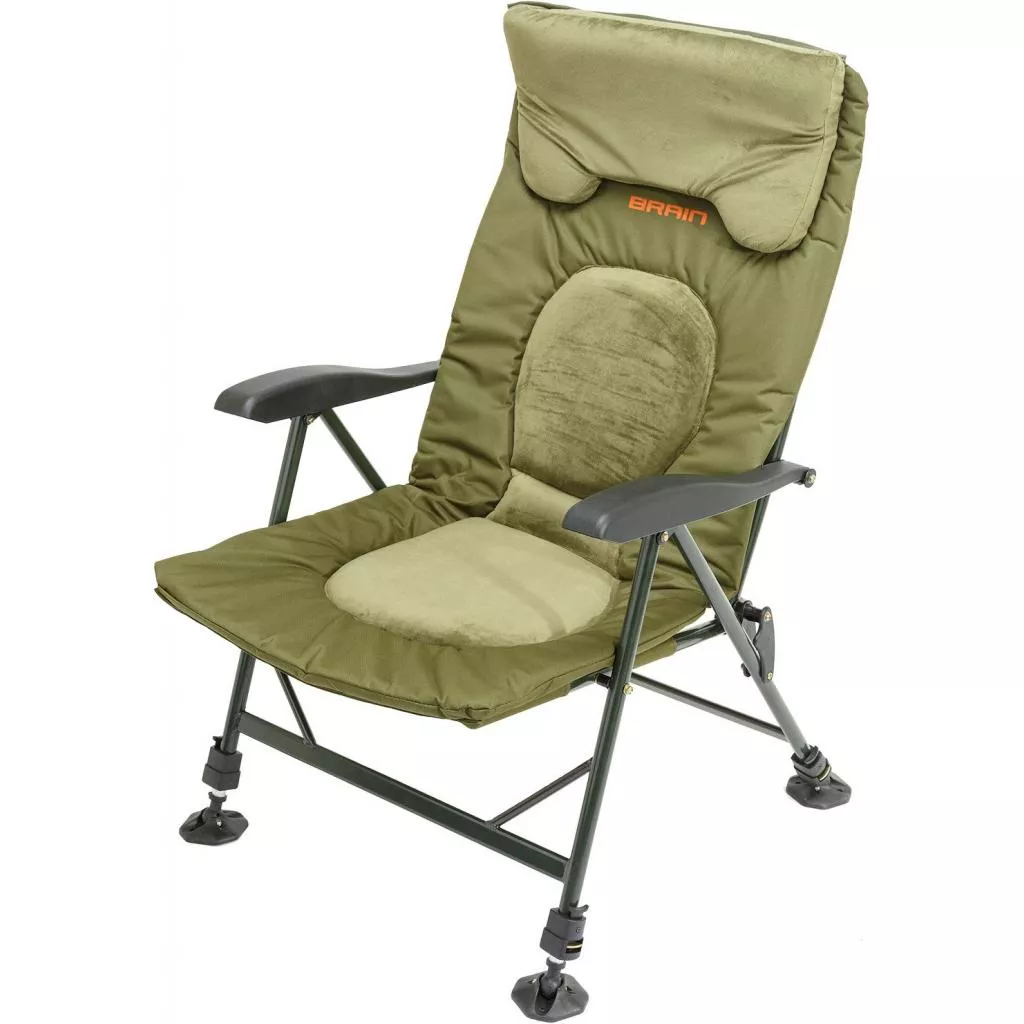 Кресло Brain Recliner Plus – удобная модель с подлокотниками для рыбалки или отдыха на природе. Комфортное расположение на сидении обеспечивают мягкие вставки из приятного на ощупь материала и широкий подголовник. Прочный каркас выполнен из стали, что позволяет креслу выдерживать высокие нагрузки. Для защиты от коррозии все металлические детали покрыты износостойкой эмалью. Регулировка наклона спинки осуществляется ослаблением фиксаторов, которые находятся на подлокотниках, поэтому менять её положение можно не вставая с кресла. Телескопические ножки и шарнирное соединение лап, позволяют устойчиво установить кресло практически на любой поверхности. Brain Recliner Plus компактно складывается для транспортировки в багажнике автомобиля или его хранения дома.