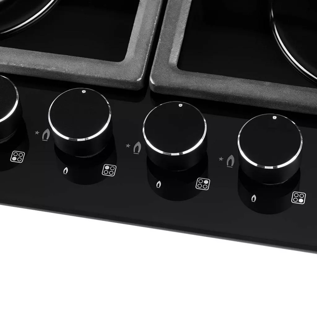 Четыре конфорки различной мощности, стильный корпус из черного закаленного стекла и система газ-контроль – в новой модели варочной поверхности есть всё, что нужно для приготовления вкусного угощения на домашней кухне.