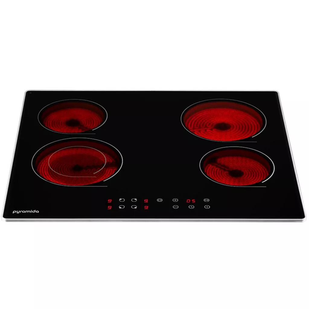 Стеклокерамическая варочная поверхность Pyramida VCH X 641 F предлагает четыре зоны нагрева с различной мощностью. Она сделана с высококачественного закаленного стекла, которое облегчает эксплуатацию всего устройства.