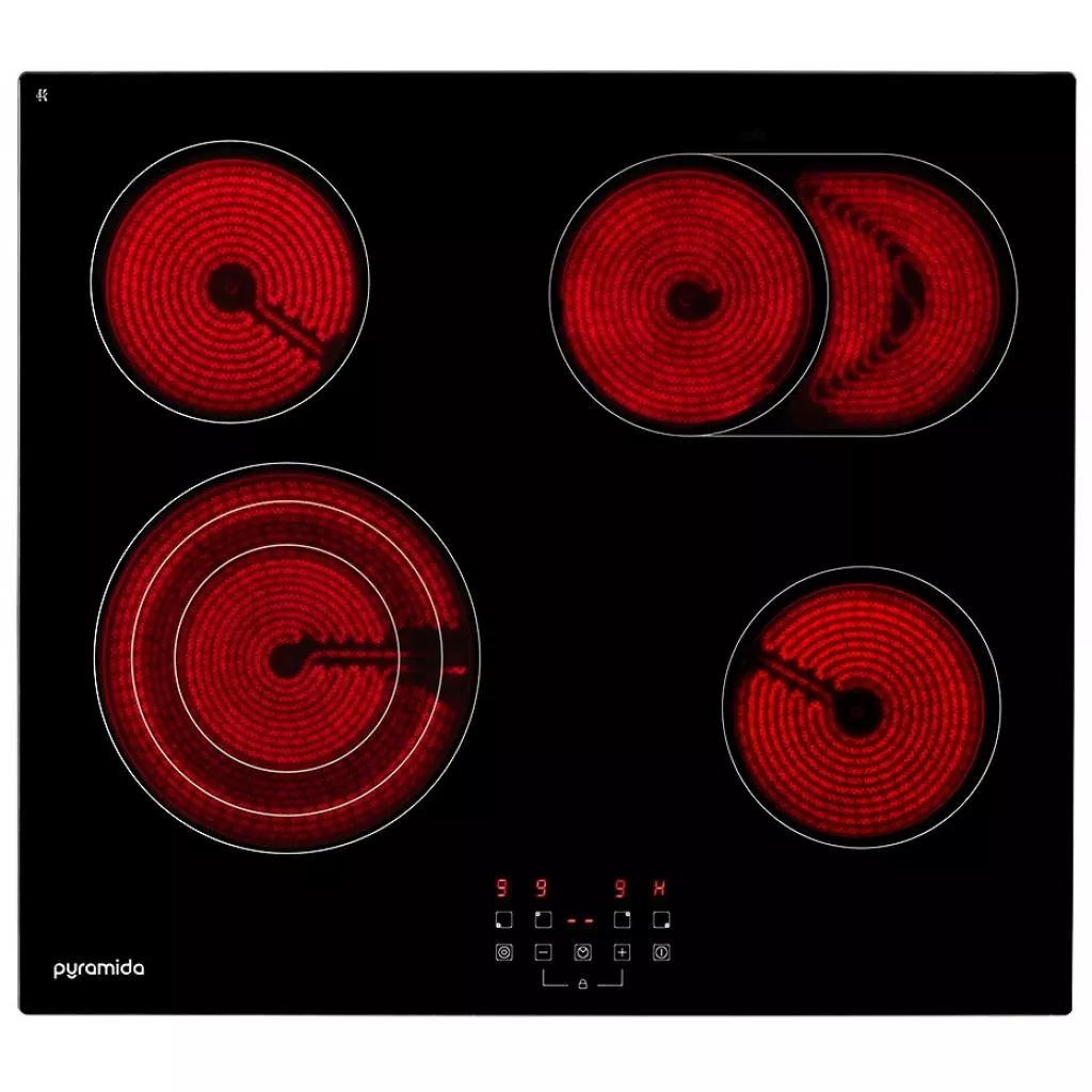 В стеклокерамических варочных поверхностях Pyramida используются качественные и долговечные нагревательные элементы High-Light. Они отличаются увеличенной теплоотдачей, поэтому такие зоны нагрева становятся горячими всего за 4-5 секунд. При температуре выше 60 °С они светятся ярким красным цветом.