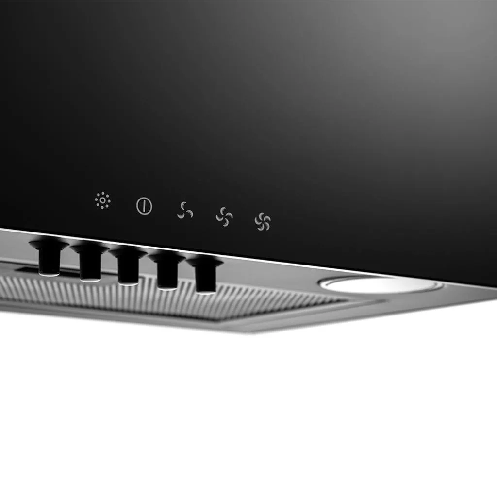 Совершенно плоская фронтальная панель выполнена полностью из черного закаленного стекла. Корпус и декоративный короб изготовлены из нержавеющей стали. Притягательный плазменный блеск стекла мягко контрастирует с матовым стальным отливом короба. Кажется, что эти сверкающие текстуры не предназначены для пространства, в котором кипит интенсивная готовка. Но на деле вытяжка демонстрирует предельную практичность и долговечность. Она абсолютно устойчива к мелким механическим повреждениям и перепадам температур во время готовки пищи, а также отличается необычайно легким уходом. Никаких изнурительных чисток – идеально плоскую поверхность достаточно просто протереть салфеткой.