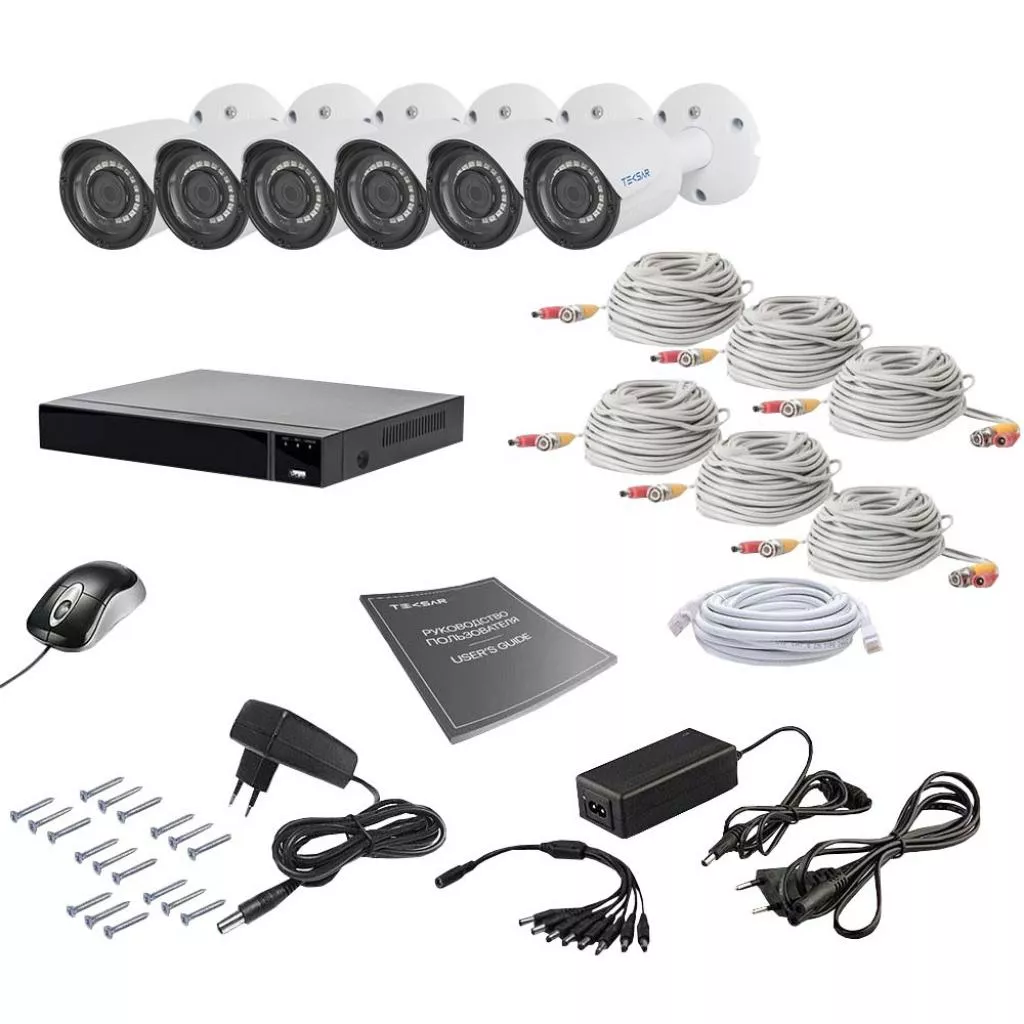 Комплект проводной системы видеонаблюдения предназначен для наблюдения в небольших помещениях, офисах, частных домах, небольших складах, автомойках, и на открытых территориях. Данный комплект состоит из шести 2Мп-видеокамер и высококачественного гибридного видеорегистратора. Работает система по следующему принципу: аналоговые камеры подключаются к видеорегистратору, передают на него видеосигнал по кабелям (BNC-входы); регистратор преобразует полученный сигнал в изображение, сжимает, и, при необходимости, записывает на жесткий диск. Просмотреть видео можно подключив к видеорегистратору телевизор или монитор. Также к регистратору можно подключаться удаленно при помощи мобильного устройства или компьютера. Комплект идеально подходит для самостоятельной установки, включает в себя необходимые для построения небольшой системы видеонаблюдения устройства и расходные материалы. Регистратор обладает интуитивно понятным интерфейсом, что позволит пользователю легко настроить работу регистратора и видеокамер.