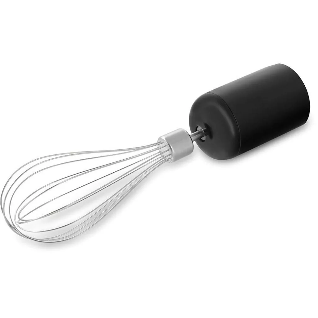 В комплект входят насадки: металлический венчик для взбивания, насадка для измельчения и смешивания.