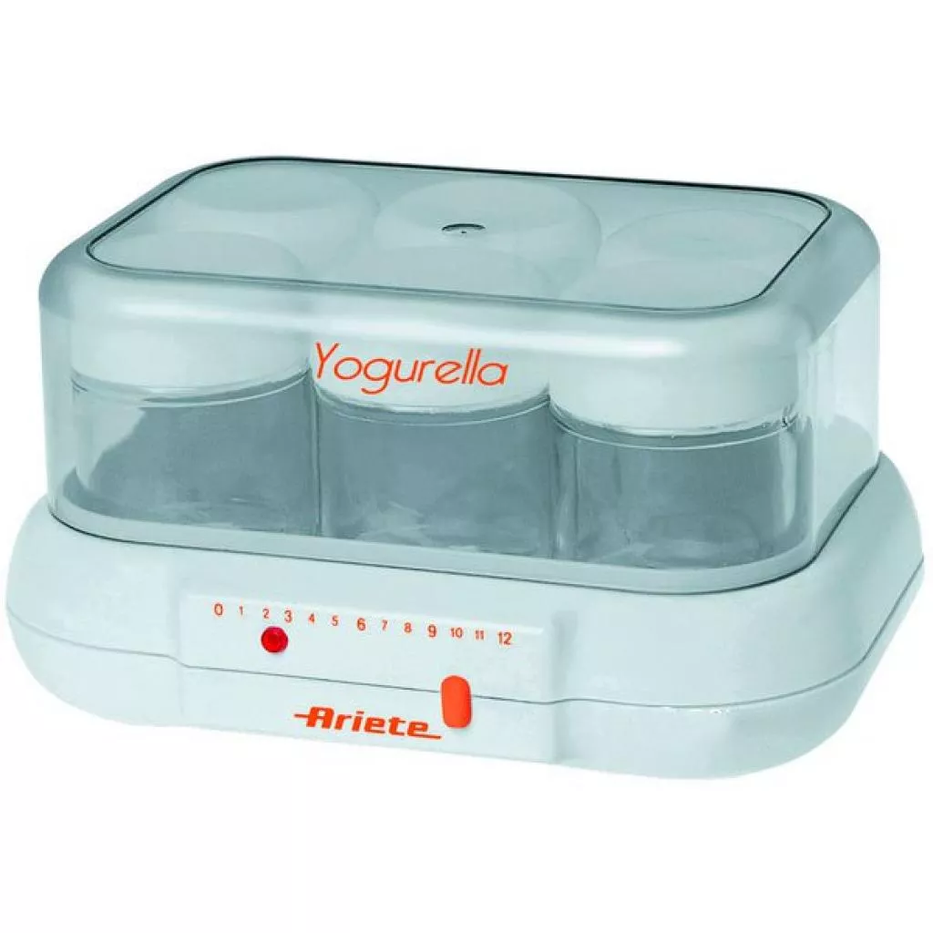 Йогуртница Ariete Yogurella 85/1 имеет в комплекте 6 стеклянных баночек с крышечками, вместимость каждой по 170 мл. Прибор имеет простой, компактный дизайн. Небольшие габариты позволяют поставить йогуртницу в любом свободном месте на кухне. Основные преимущества данной модели – это качество и приемлемая цена. Купить такой прибор и готовить настоящий домашний йогурт – просто и удобно.