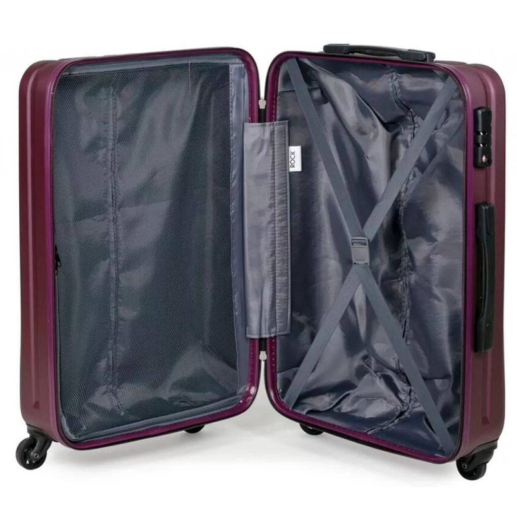 Путешествуйте легко с чемоданом Rock Daytona, который идеально подходит для путешествий на выходные дни и для деловых поездок. Корпус выполнен из прочного ABS-пластика, что важно для транспортировки и безопасности багажа. Рисунок по корпусу предотвращает сдавливание и защищает от царапин, и сохраняет прекрасный внешний вид на протяжении долгого времени использования. Коллекция Daytona оснащенная четырьмя полноповоротными колесами и выдвижной фиксируемой телескопической ручкой. Внутренний объем разделен сетчатой перегородкой на два отделения и имеет ремни для фиксации вещей внутри.
