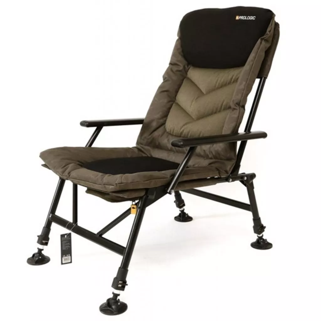 Серия раскладных кресел Prologic Commander Chair специально разработана для использования на карповой рыбалке или в кемпинге. Максимальный комфорт создают высокая откидная спинка с неопреновой подушкой, мягкое сидение и подлокотники. Сидение и спинка имеют мягкий наполнитель и внешний слой из непромокаемой дышащей ткани MCP цвета хаки. Движущиеся широкие упоры на концах телескопических ножек препятствуют погружению в сыпучий или мягкий грунт под весом сидящего человека и позволяют устойчиво устанавливать кресло на неровной поверхности берега. Складная конструкция стального каркаса выдерживает нагрузку до 140 кг. Линейку серии составляют модели Commander Daddy Long Chair, Commander Relax Chair, Commander Travel Chair, схожие между собой конструкциями и несколько отличающиеся габаритами, размерностями и массой. Кресло Prologic Commander Chair обеспечит максимум удобства рыболову, ожидающему на берегу очередную поклевку желанного трофея.