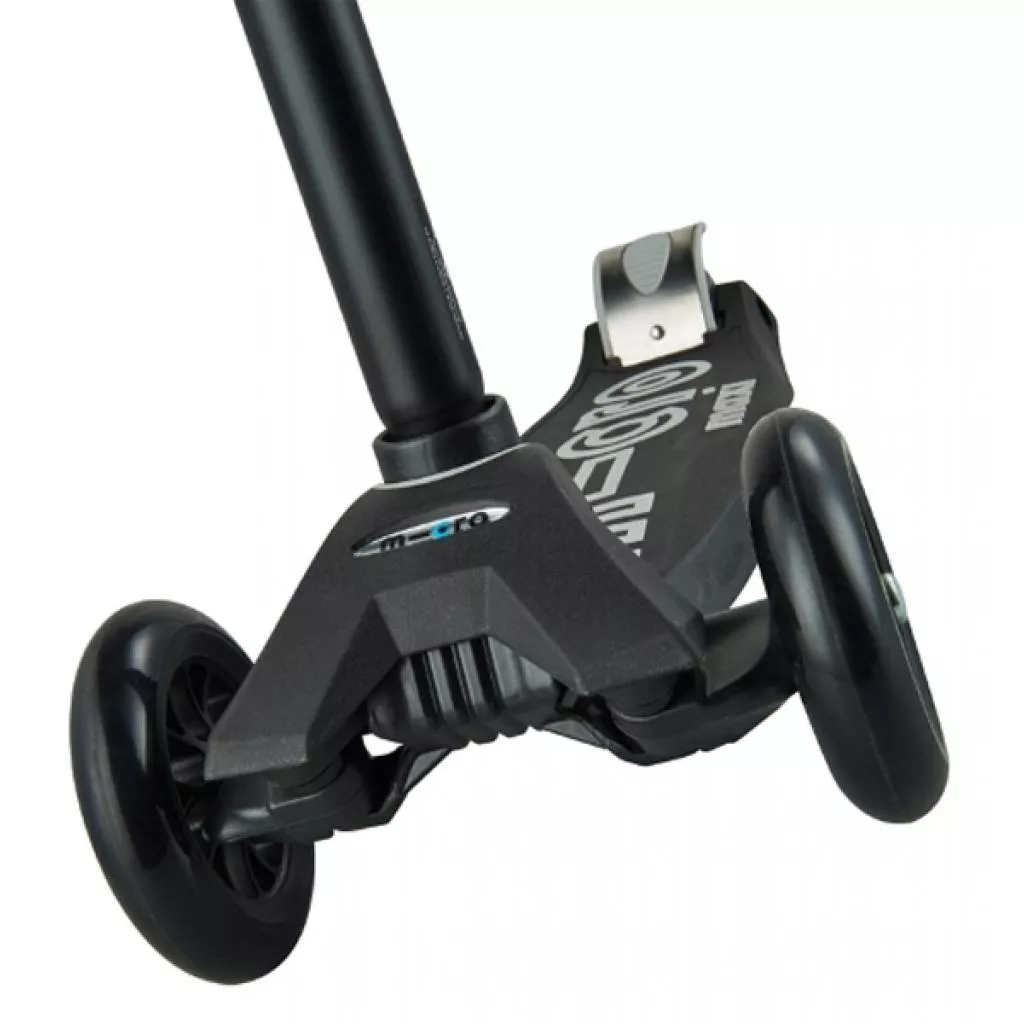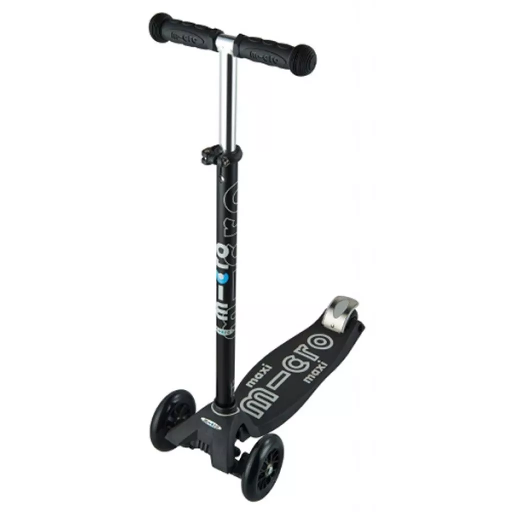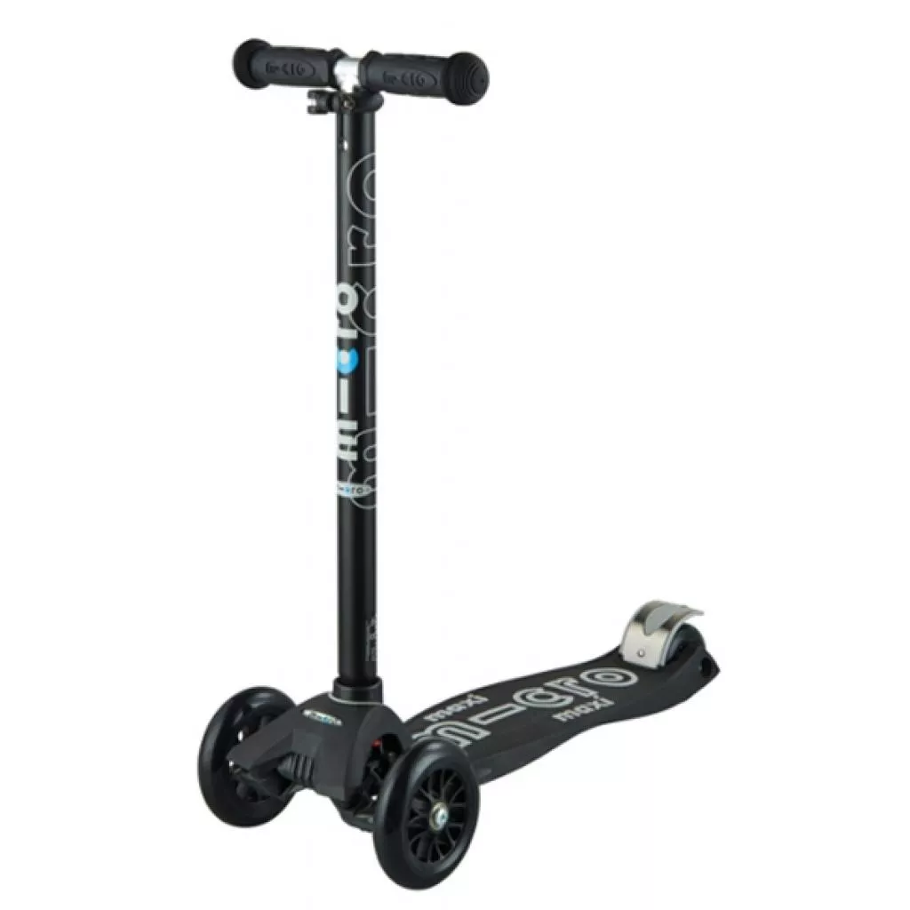 Самокаты серии Maxi Micro Deluxe разработаны инженерами швейцарской компании Micro Mobility Systems AG как следующая за Mini Micro Deluxe модель и рассчитаны на возраст от 5 до 12 лет. Самокат Maxi Micro Deluxe представляет собой доработанную и усиленную версию самоката Mini Micro Deluxe. Он также имеет телескопическую рулевую стойку руля. Это позволяет устанавливать оптимальную высоту руля в пределах 68 - 92 см от поверхности земли по мере роста ребенка. Максимальный рост для комфортной эксплуатации самокатов Maxi Micro Deluxe составляет около 150 см. При необходимости рулевую стойку можно достаточно быстро отсоединить от деки для транспортировки или хранения самоката. Дека самокатов серии Deluxe обновлена ??и имеет дополнительные элементы, выступающие в виде логотипа «micro», которые улучшают сцепление ноги с поверхностью деки. Основа самоката изготовлена ??из прочного нетоксичного пластика, усиленного стекловолокном. Все самокаты серии Maxi Micro Deluxe имеют уникальный запатентованный компанией Micro поворотный механизм.
