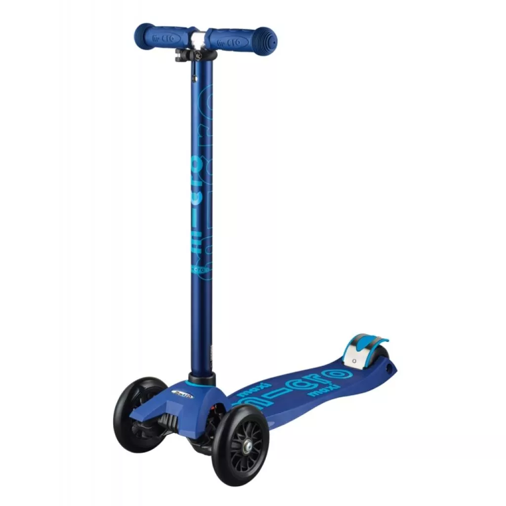 Самокаты серии Maxi Micro Deluxe разработаны инженерами швейцарской компании Micro Mobility Systems AG как следующая за Mini Micro Deluxe модель и рассчитаны на возраст от 5 до 12 лет. Самокат Maxi Micro Deluxe представляет собой доработанную и усиленную версию самоката Mini Micro Deluxe. Он также имеет телескопическую рулевую стойку руля. Это позволяет устанавливать оптимальную высоту руля в пределах 68 - 92 см от поверхности земли по мере роста ребенка. Максимальный рост для комфортной эксплуатации самокатов Maxi Micro Deluxe составляет около 150 см. При необходимости рулевую стойку можно достаточно быстро отсоединить от деки для транспортировки или хранения самоката. Дека самокатов серии Deluxe обновлена ??и имеет дополнительные элементы, выступающие в виде логотипа «micro», которые улучшают сцепление ноги с поверхностью деки. Основа самоката изготовлена ??из прочного нетоксичного пластика, усиленного стекловолокном. Все самокаты серии Maxi Micro Deluxe имеют уникальный запатентованный компанией Micro поворотный механизм.